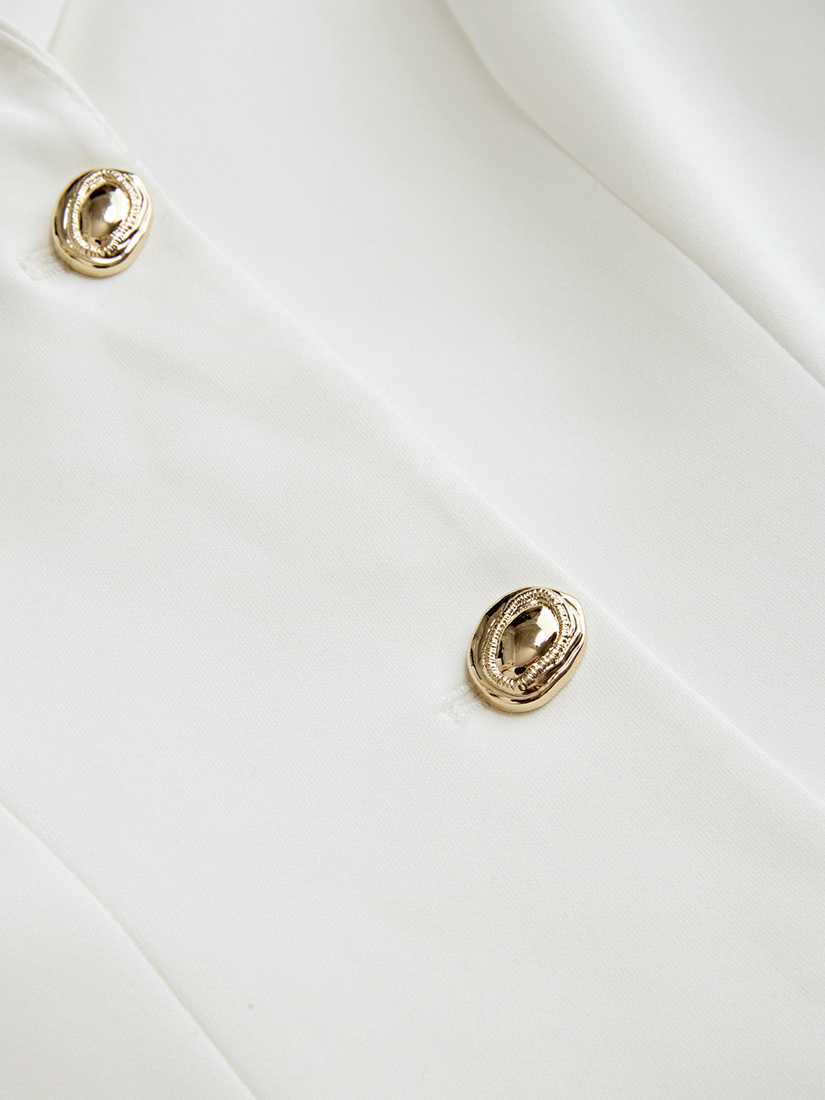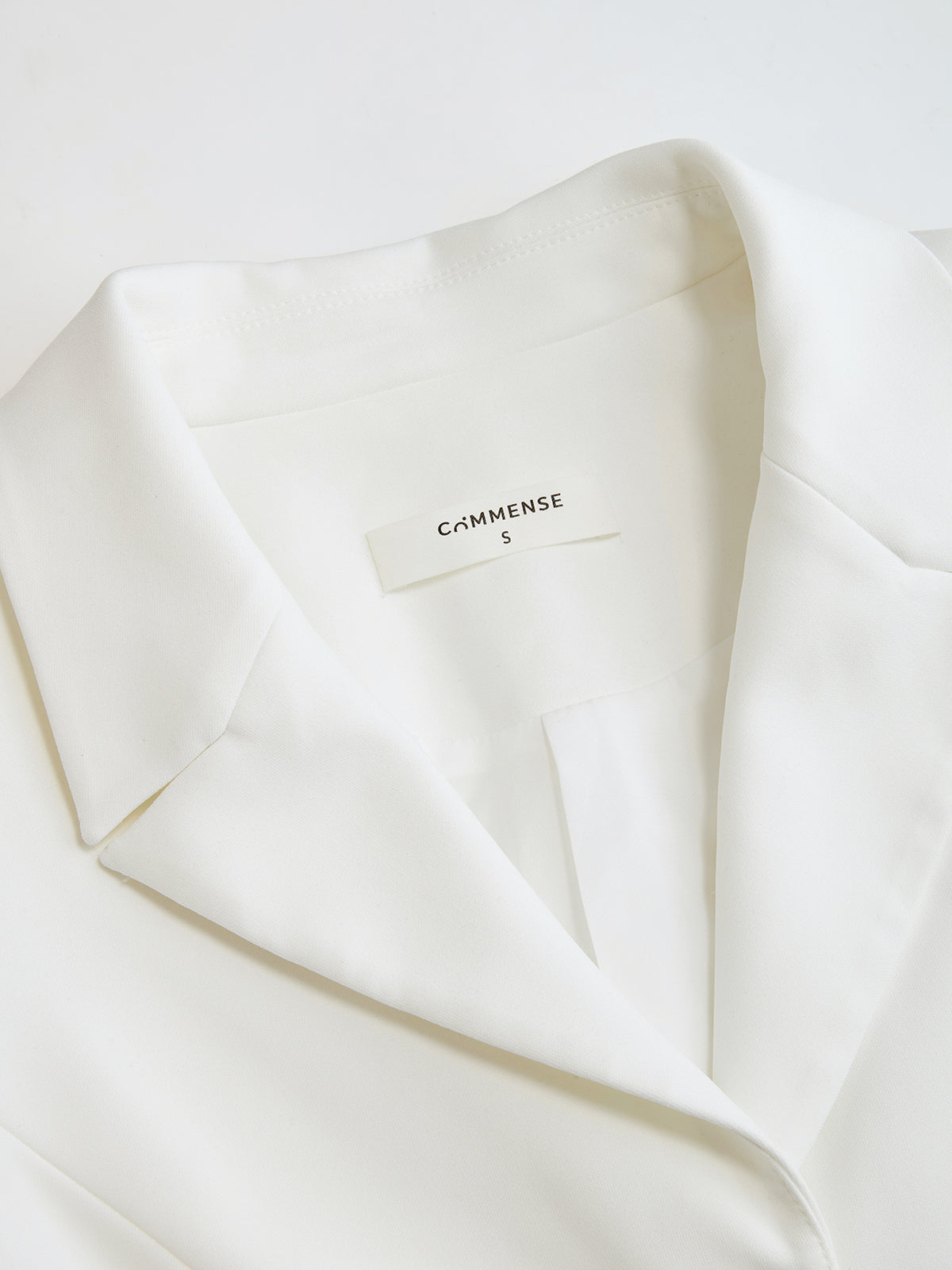 casual,clothing,coll:dresses,corpcore,dresses,fall,in_six_month,long sleeve,metal detail,minegence,not_low_sales,oa251011021,photo_ai,regular,regular fit,shawl collar,short,slight stretch,spring,white,winter,women,woven fabric,yes