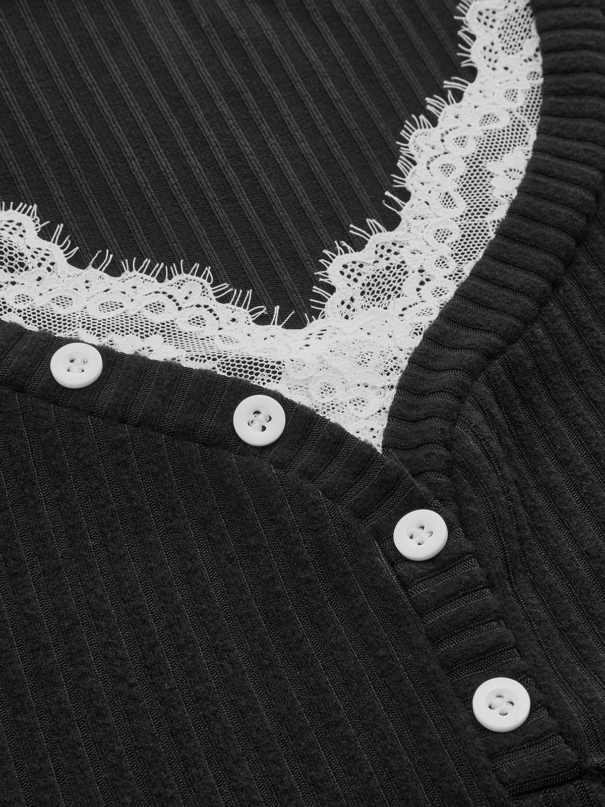 black,casual,clothing,coll:knitwear,coll:tops,corpcore,fall,in_six_month,lace,long sleeve,minegence,no,not_low_sales,oa251113032,regular,ribbed,slight stretch,slim fit,spring,t-shirts,tops,v-neck,winter,women