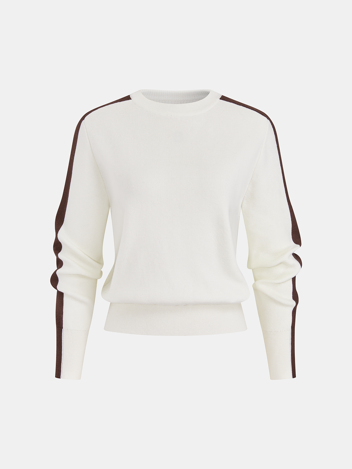 Wool-Blend Contrast-Stripe Crew Neck Sweater