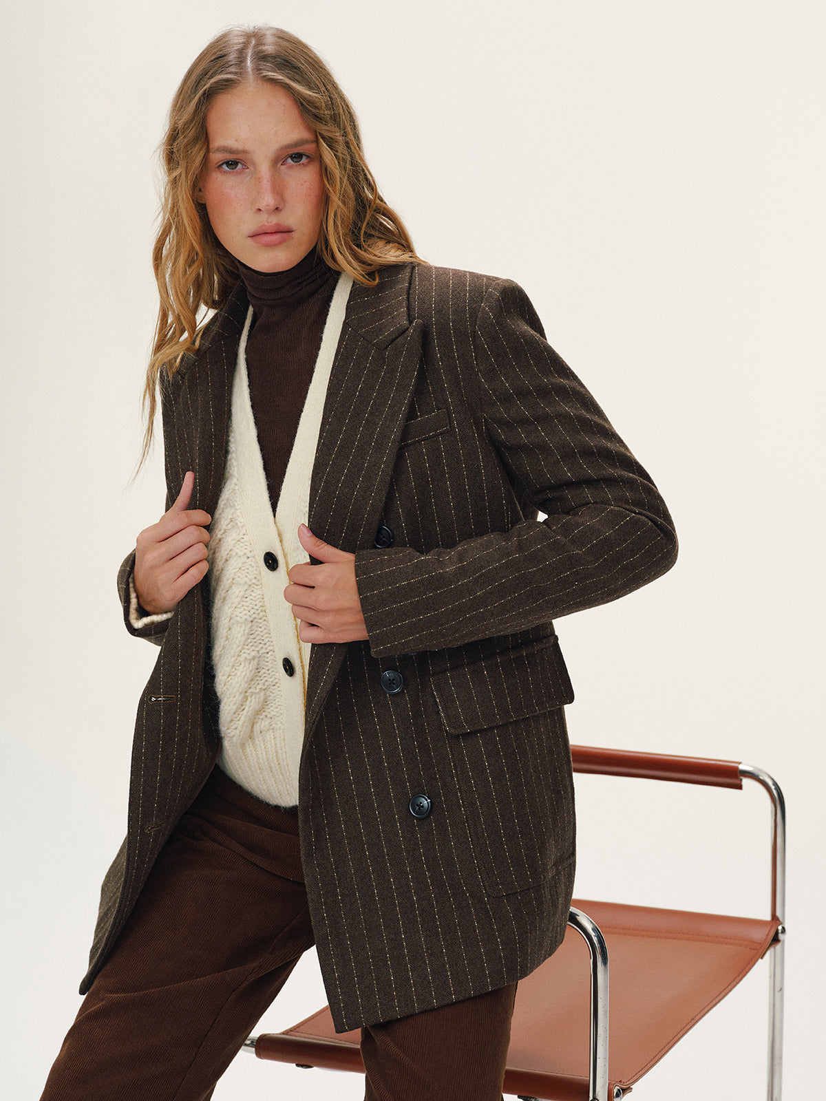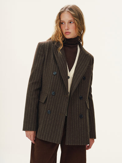 Wool-Blend Double-Breasted Striped Blazer