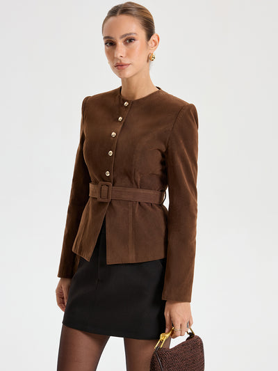 Contrast Stitched Shawl Collar Belted Knit Outerwear