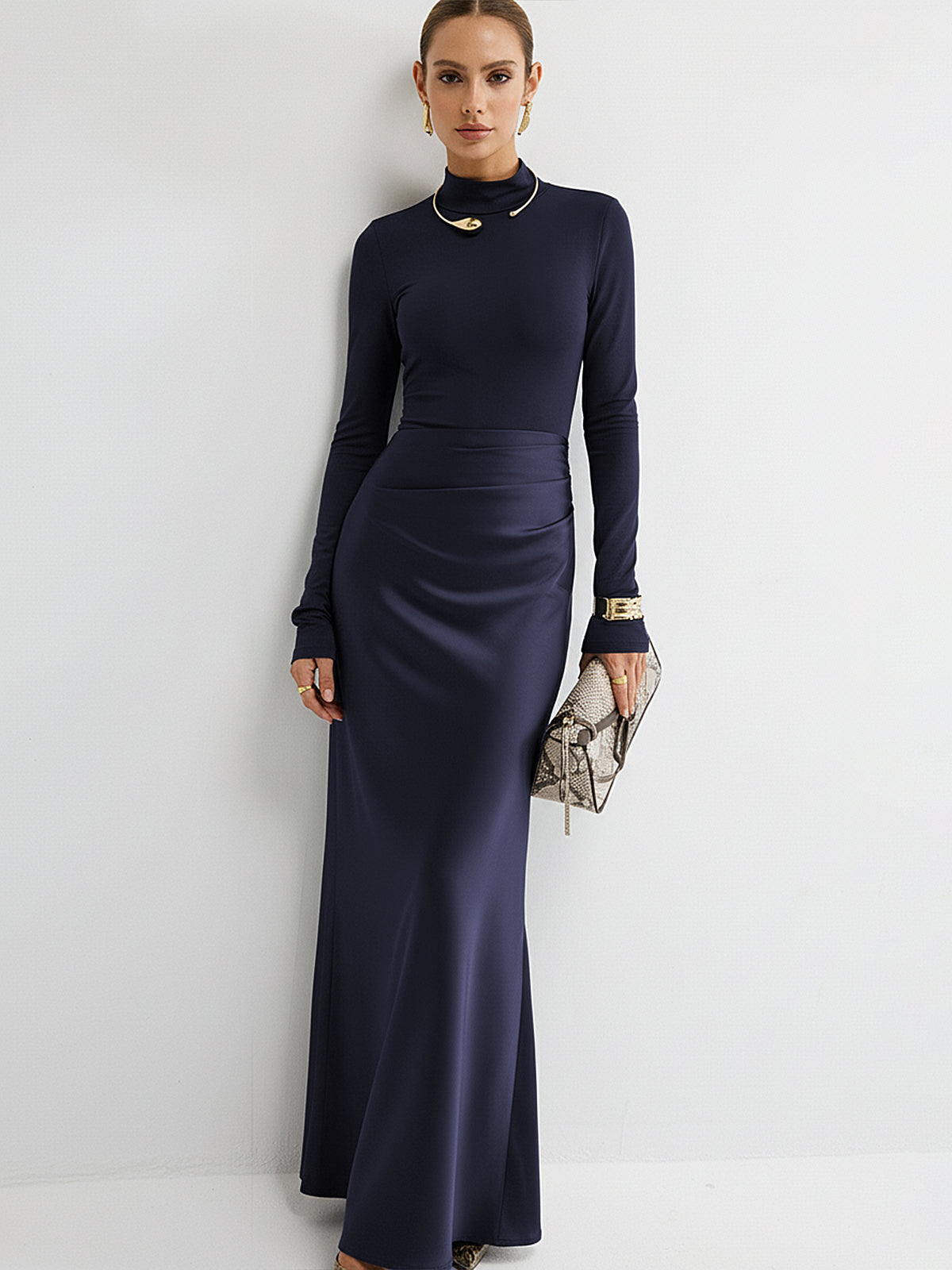 black,burgundy,cathryn-t,cici select,clothing,coll:dresses,coll:night_glam,coll:trending,cyy,daily,dark navy,dresses,fall,in_six_month,invisible zipper,jersey,light brown,long sleeve,maxi,medium stretch,mock neck,mwt,no,not_low_sales,oa250717054,party,patchwork,photo_model,regular,ruched,satin,serena-选品,slim fit,social gleam,spring,winter,women,zyq