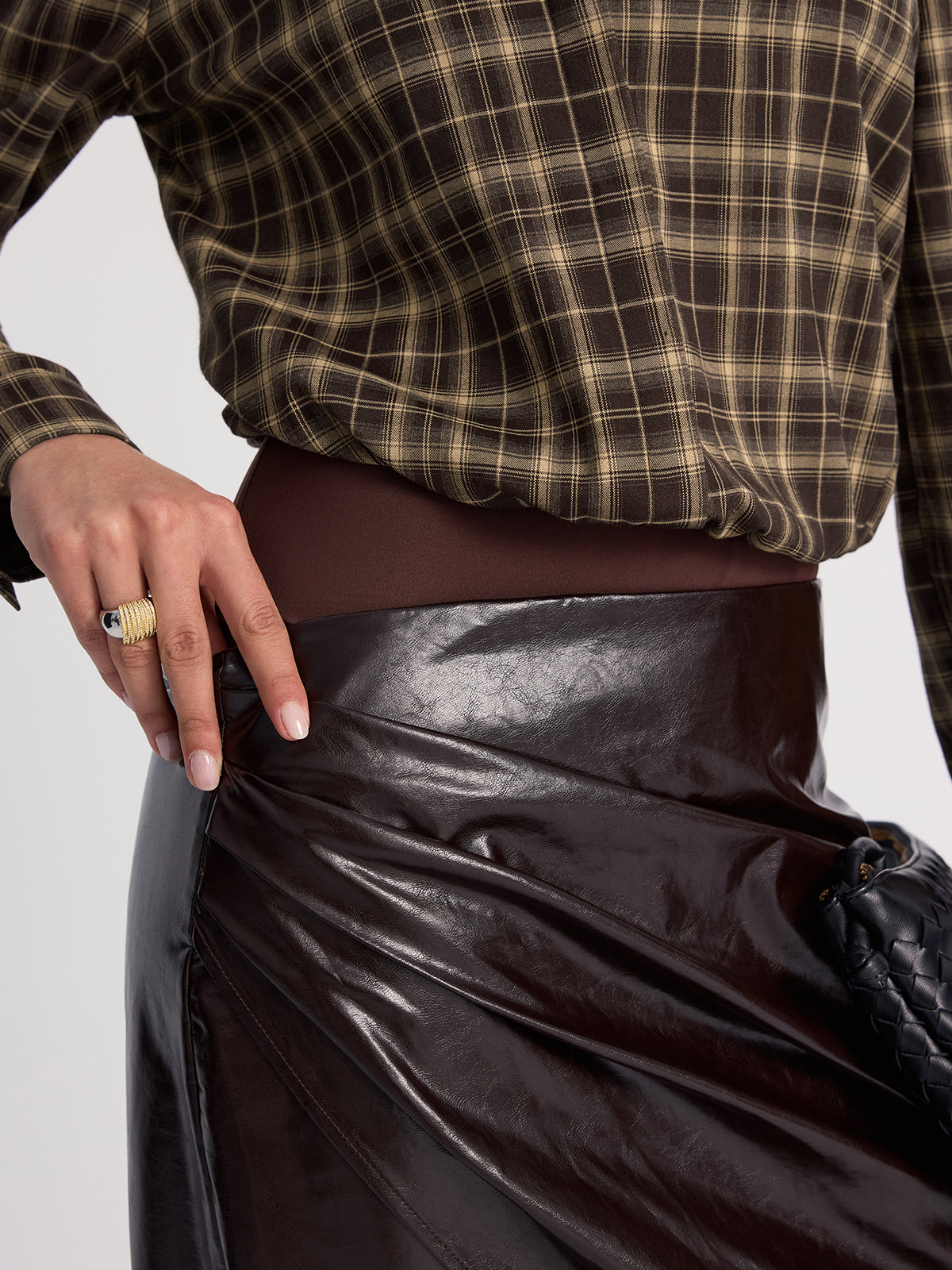 a-none,bodysuits,brown,casual,clothing,coll:tops,collar,corpcore,fall,in_six_month,lingerie,long sleeve,minegence,no,non-stretch,not_low_sales,oa251011026,photo_model,regular,regular fit,tops,winter,women,woven fabric