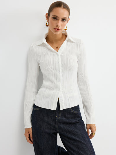 High-Stretch Contrast Shirt Collar Knit Bodysuit
