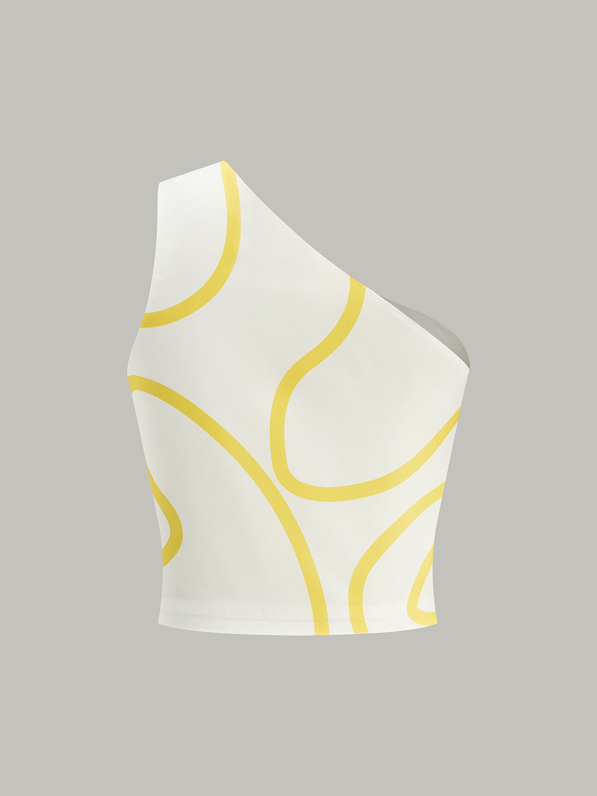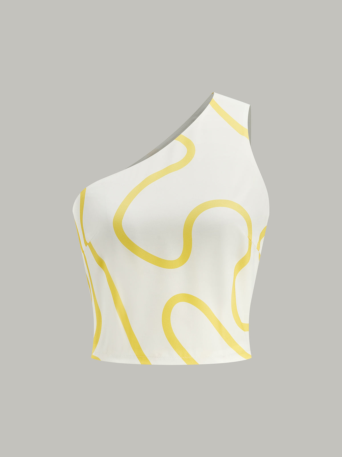 One-Shoulder Abstract Print Crop Top and Tiered Maxi Skirt Set