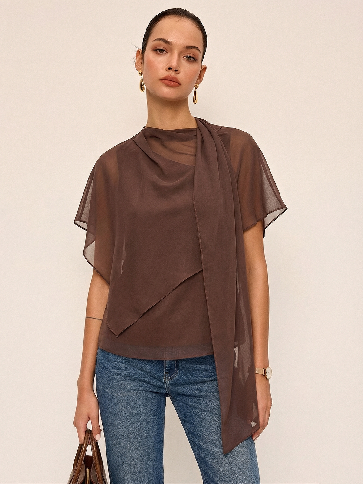 Sheer Scarf Top & One-Shoulder Top Two-Piece Set