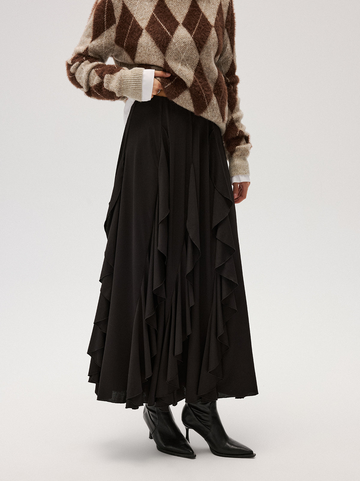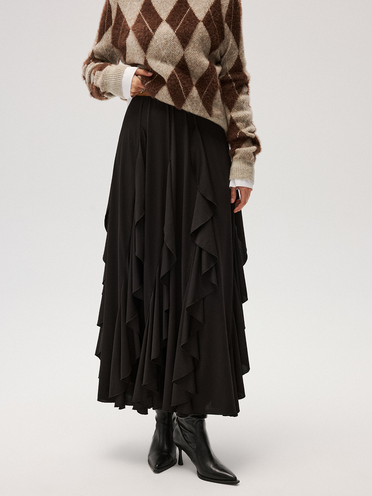 black,bohochic,bottoms,clothing,coll:bottoms,coll:night_glam,coll:skirts,date,fall,feminine,in_six_month,maxi,mesh,mid waist,no,not_low_sales,oa251024113,party,photo_model,regular,regular fit,ruffle,skirts,slight stretch,spring,winter,women