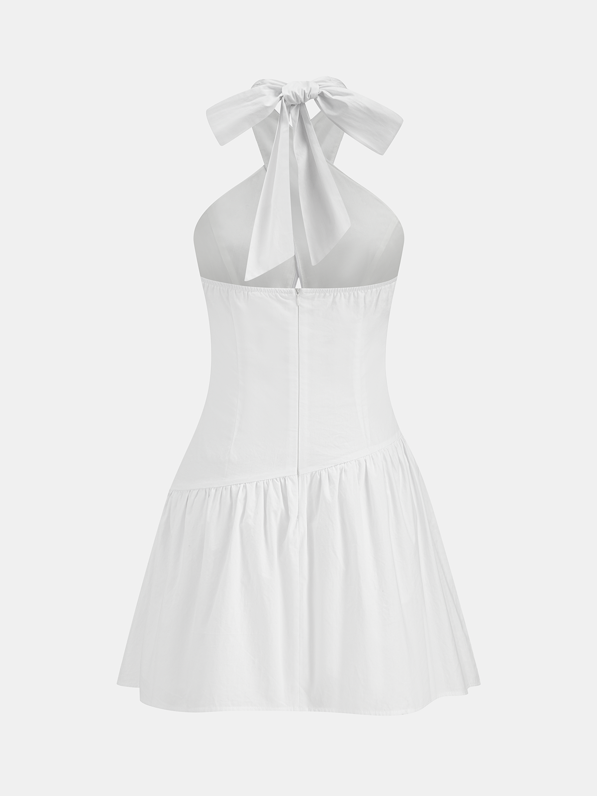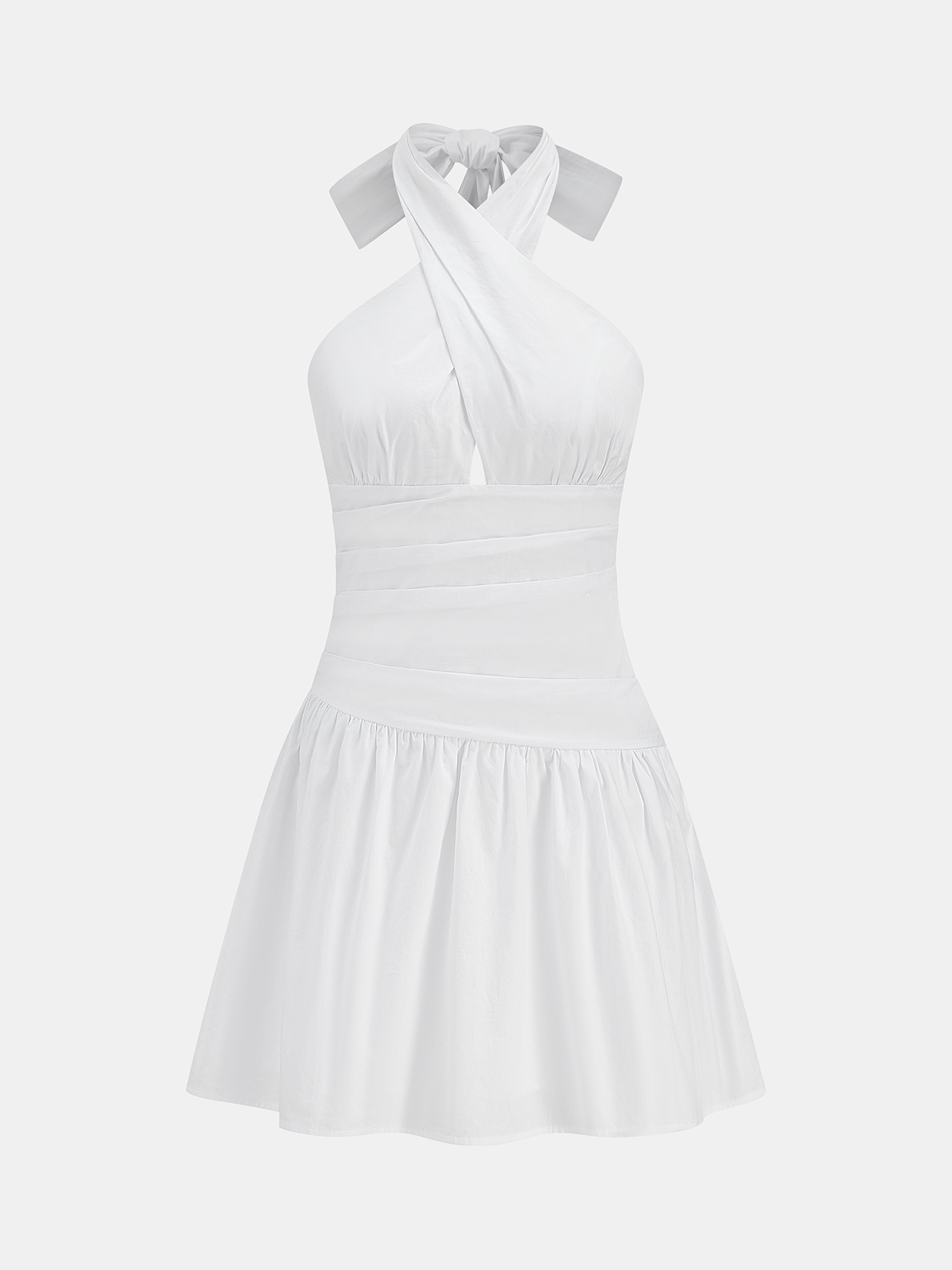 bow,clothing,coll:dresses,coll:linen_cotton,coll:night_glam,cotton,cross-over collar,date,dresses,halter,in_six_month,invisible zipper,minegence,no,non-stretch,not_low_sales,oa260116007,party,photo_ai,ruched,short,sleeveless,slim fit,thin,white,women