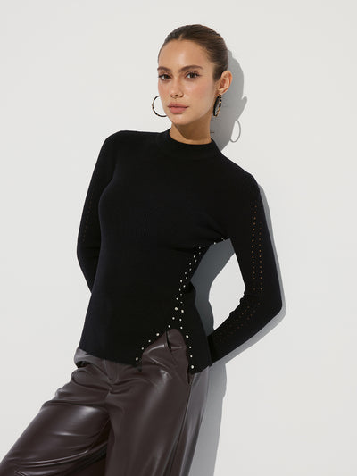 Studded Side Slit Knit Sweater