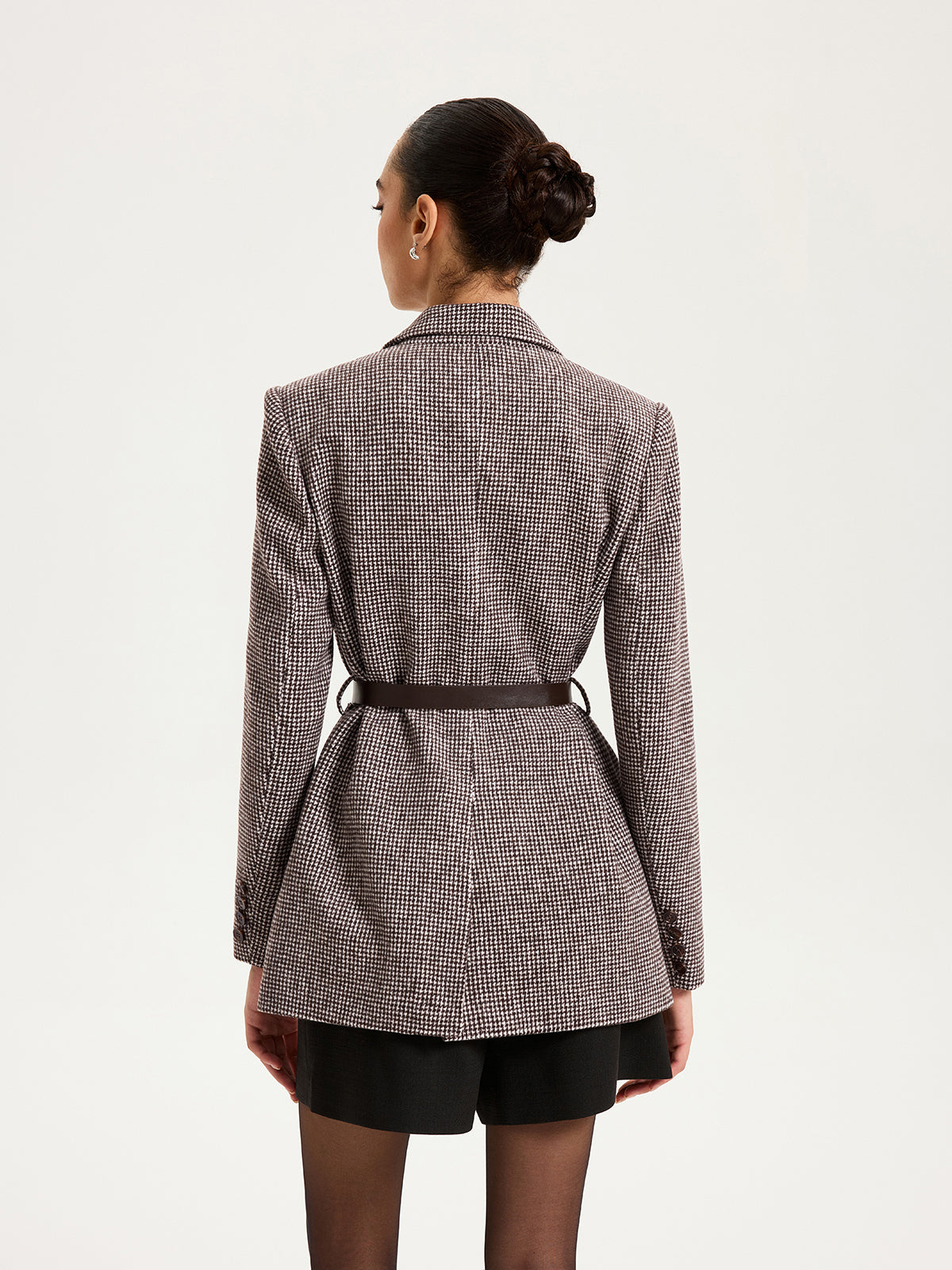 Belted Houndstooth Blazer