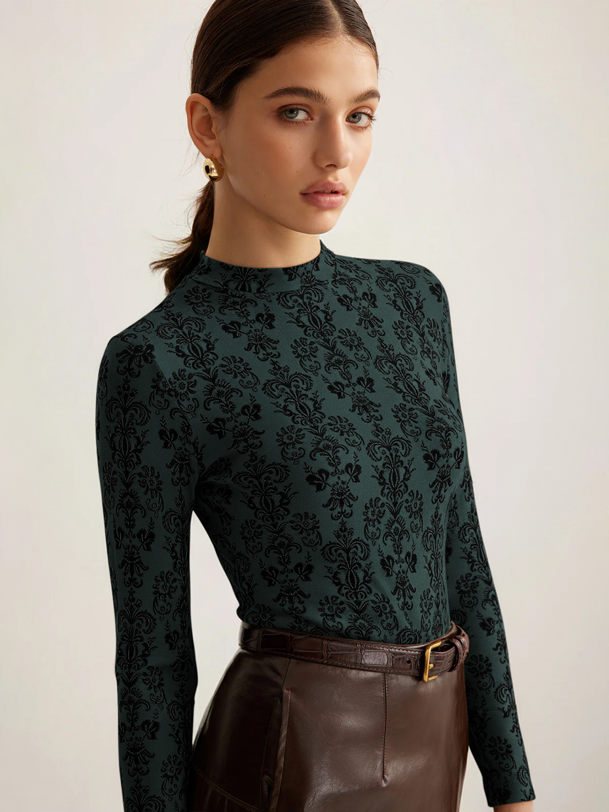 a-none,aw pattern,basic - best value,cici select,clothing,coll:tops,dark brown,dark green,fall,flashsale2023,in_six_month,long sleeve,lsy,mechanism knitting,medium stretch,minegence,mwt,no,not_low_sales,oa250807053,off-white,photo_ai,regular,serena-选品,slim fit,spring,stand collar,t-shirts,tops,winter,women,zyq