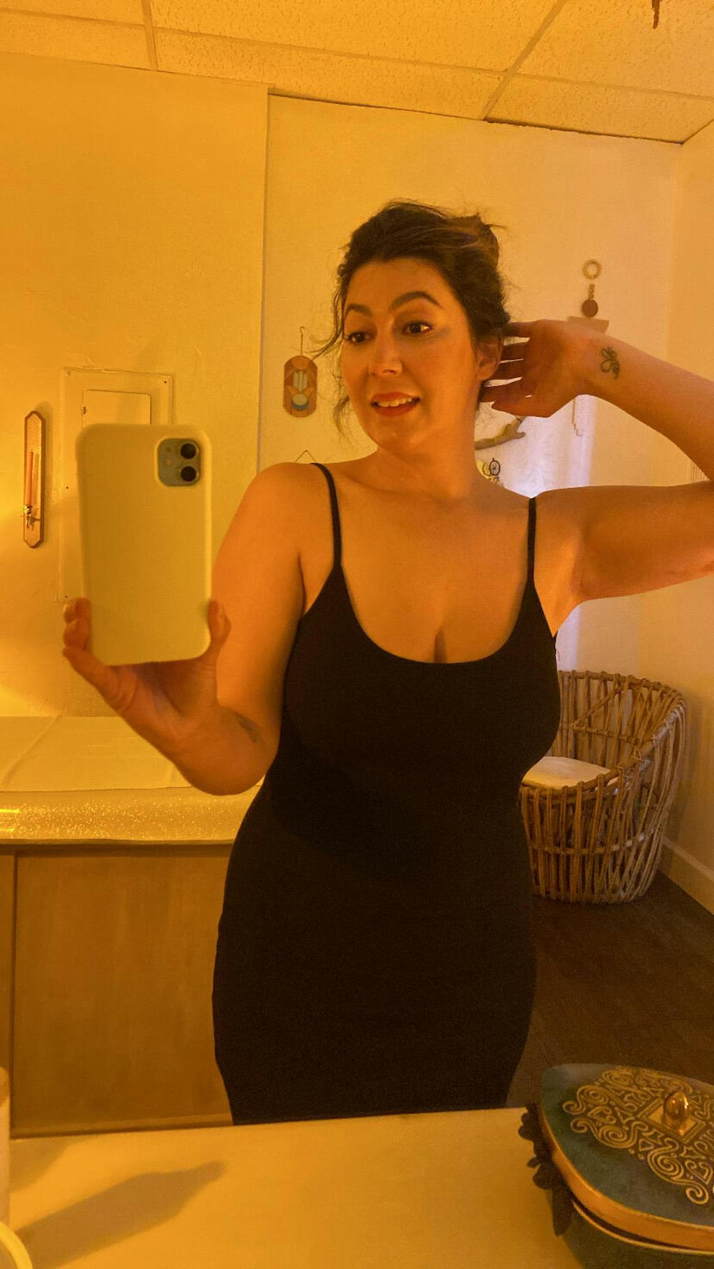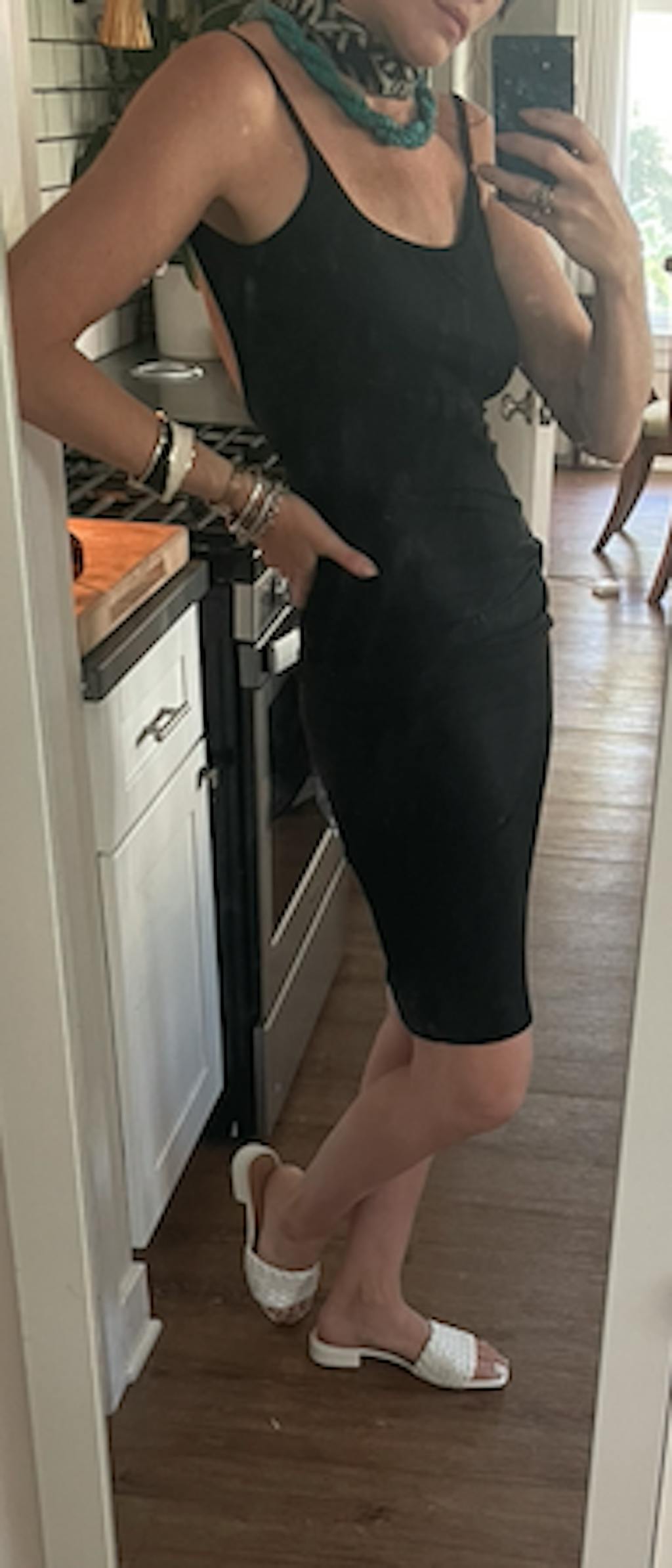 The dress fits like a glove. It accentuates my curves.