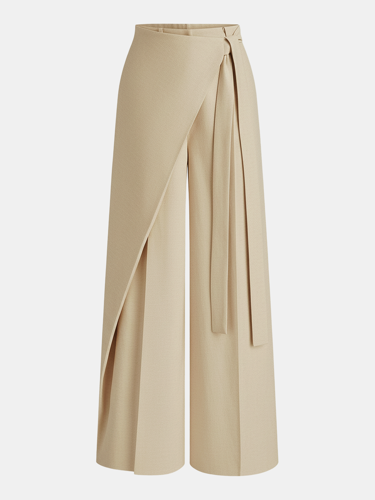 Puddle Hem Asymmetric Wrap Wide-Leg Pants