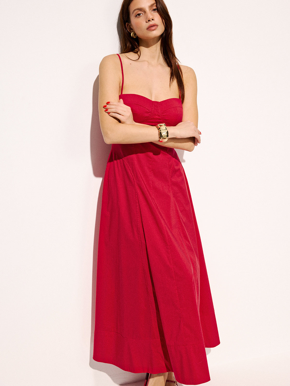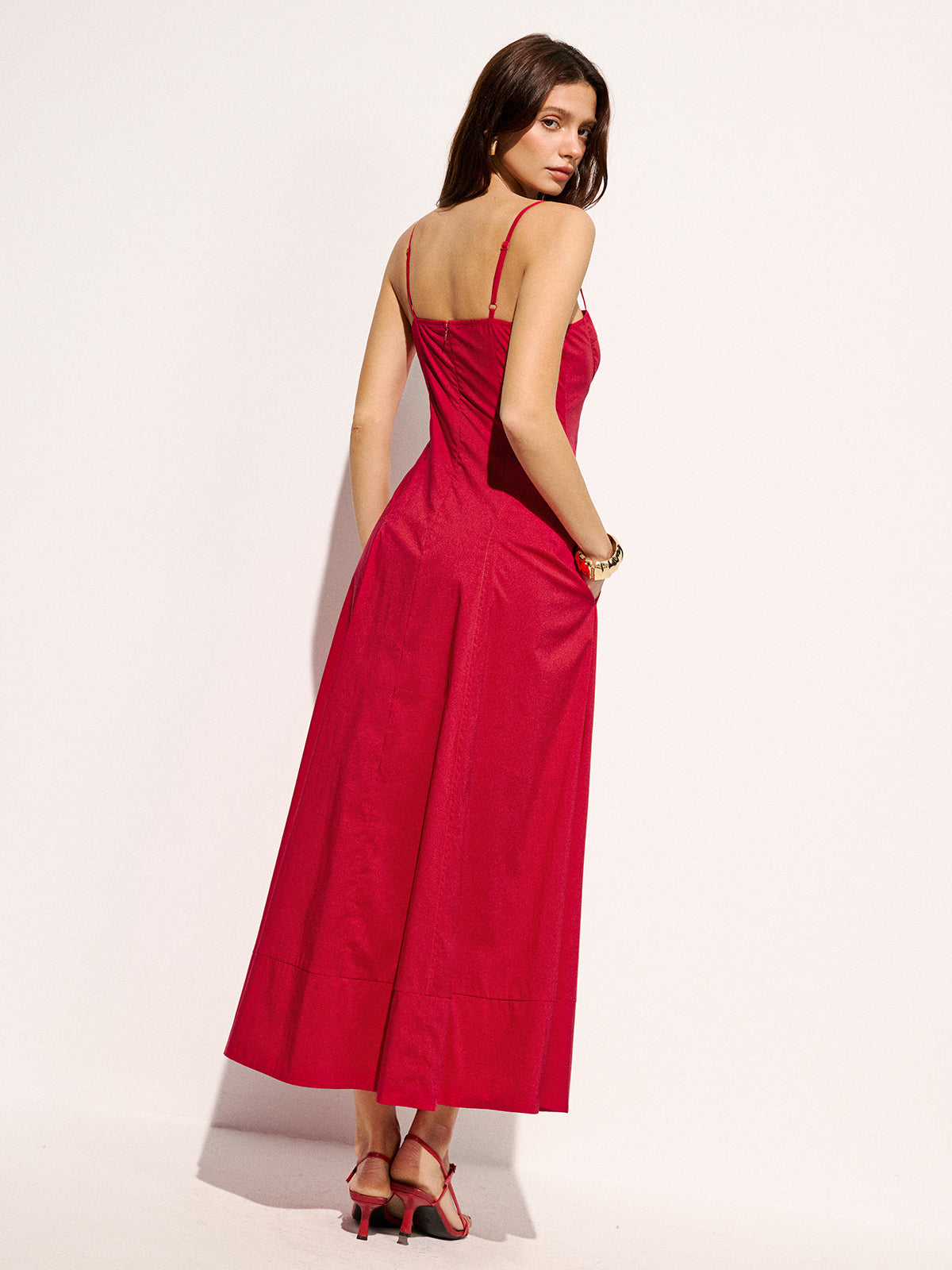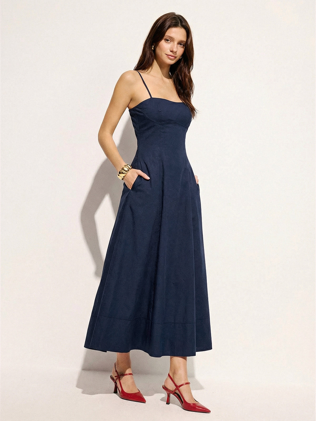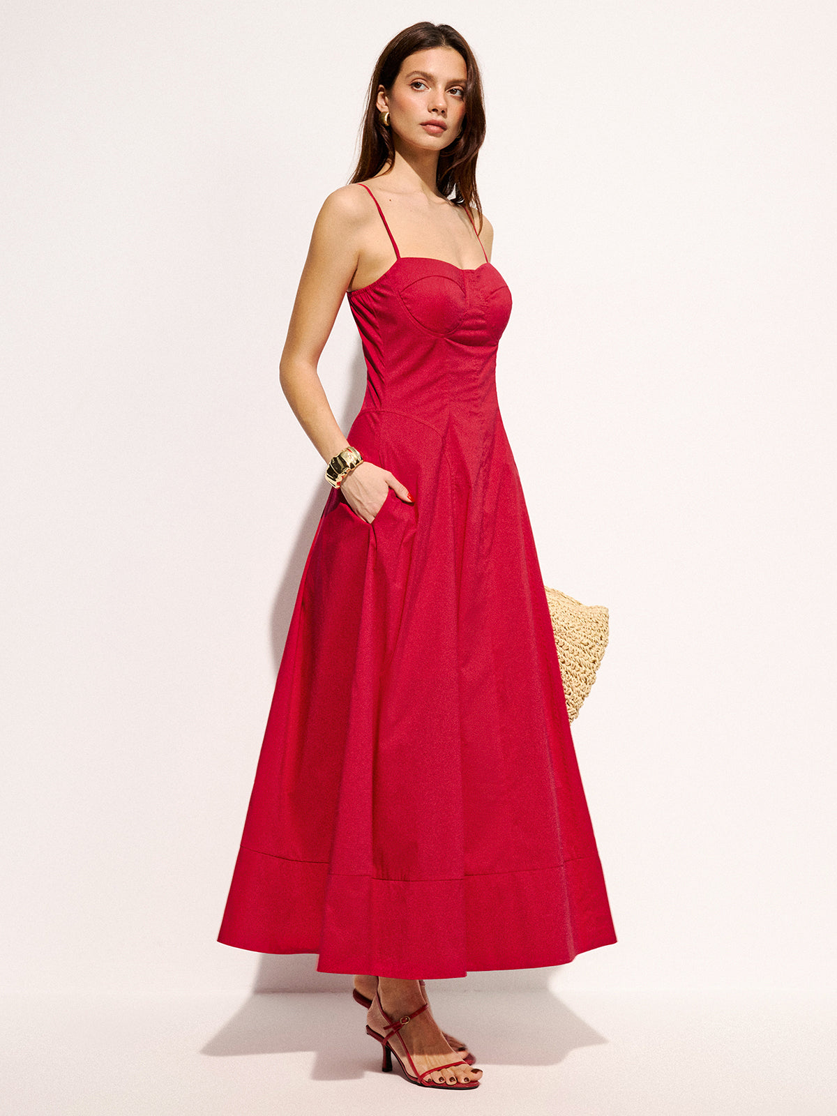 Cotton Blend Pocketed Cami Flared Maxi Dress