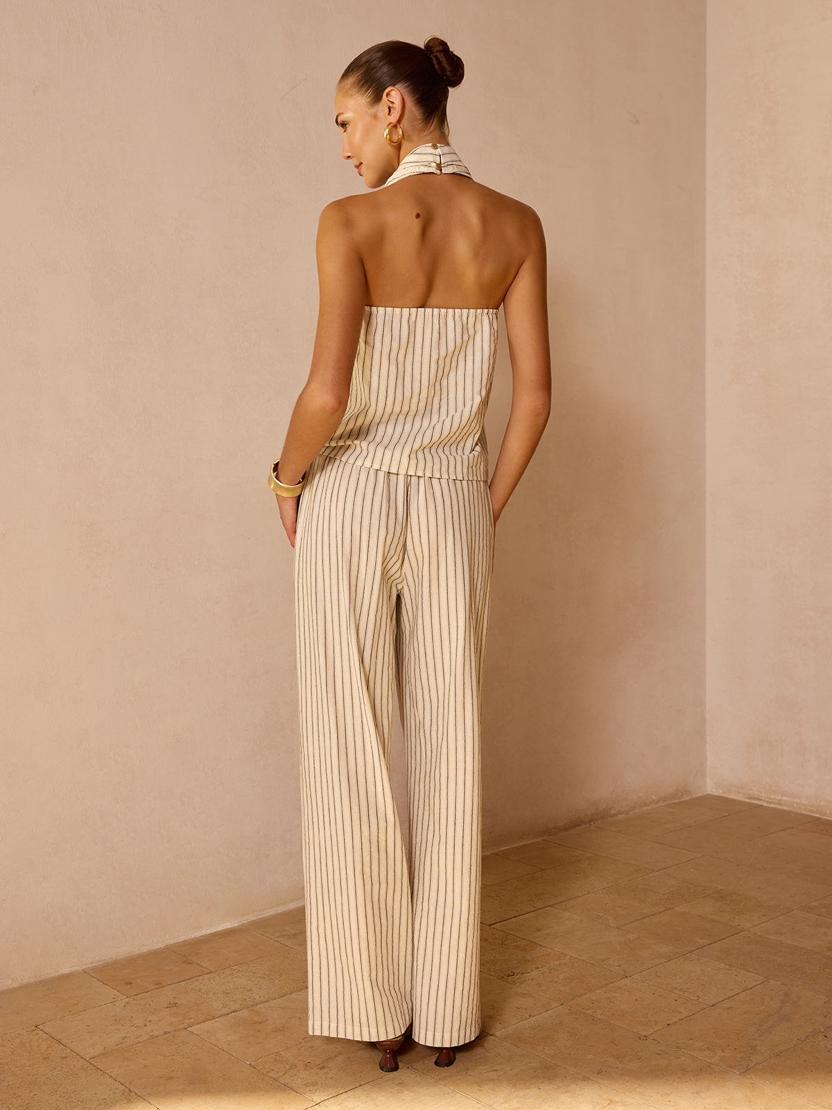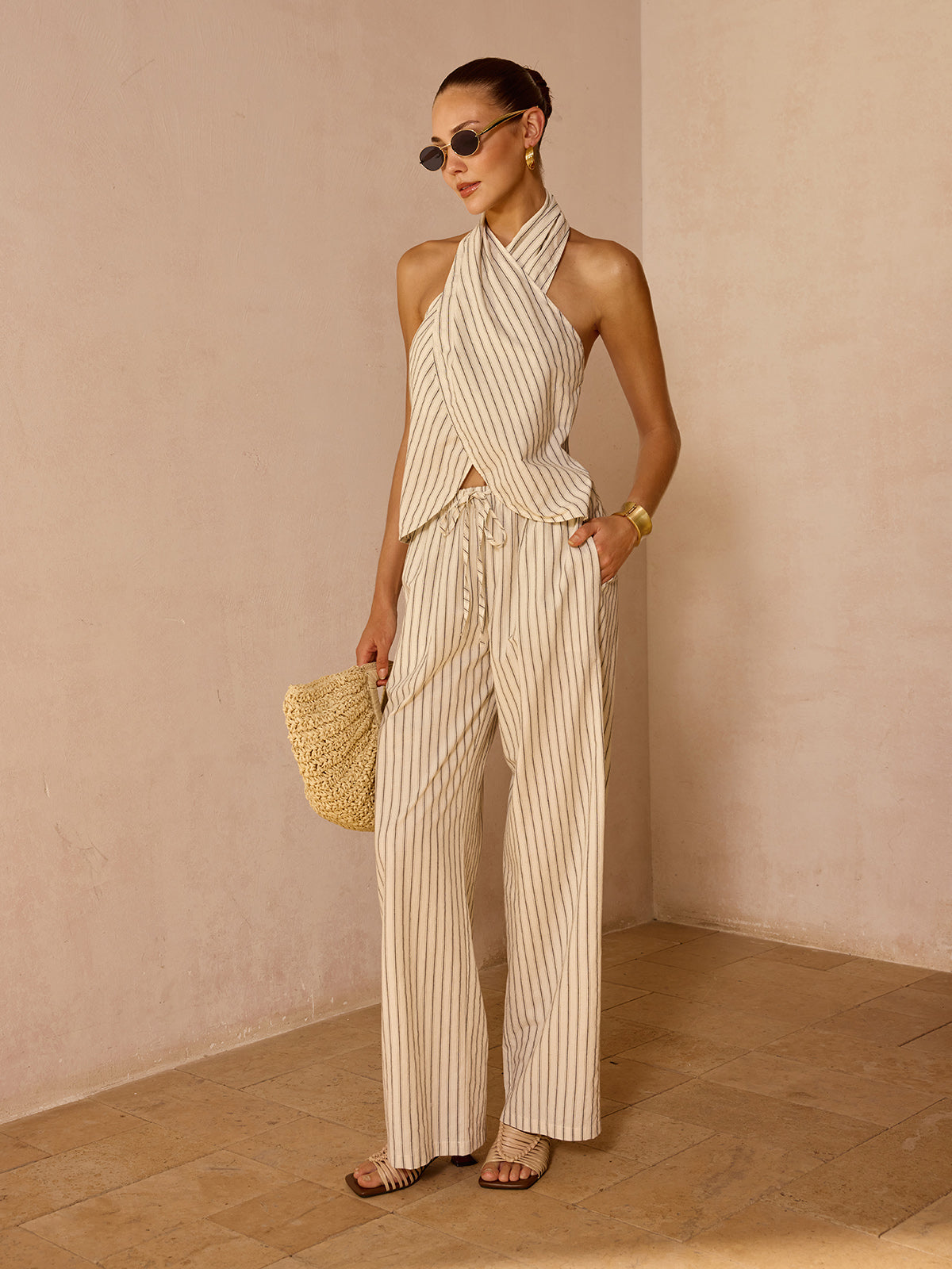 basic - designer,casual,clothing,coll:bottoms,coll:linen_cotton,coll:matching_sets,coll:vacation,coll:weekend_getaway,cotton&linen,cross wrap,elastic waistband,in_six_month,minegence,non-stretch,not_low_sales,oa260119041,off-white,pant sets,photo_model,regular,sets,shift,stripe,swim & stroll,vacation,women