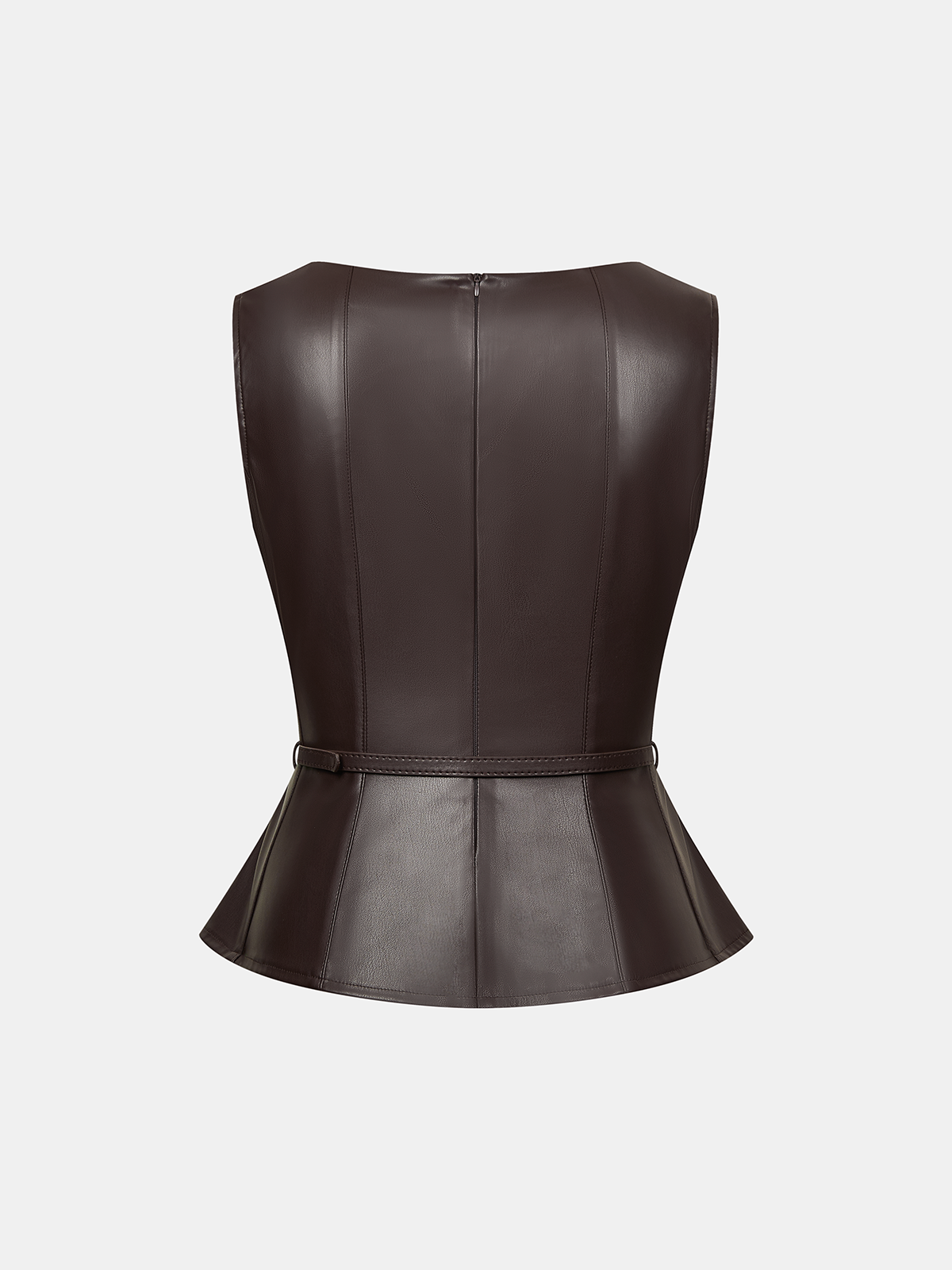 casual,clothing,coll:old_money,coll:tank_tops_camis,coll:tops,coll:vintage_fabrics,crew neck,dark brown,date,fall,faux leather,in_six_month,invisible zipper,minegence,no,non-stretch,not_low_sales,oa251112050,regular,ruffle,short top,sleeveless,slim fit,spring,tank tops & camis,tops,winter,winter hues,women