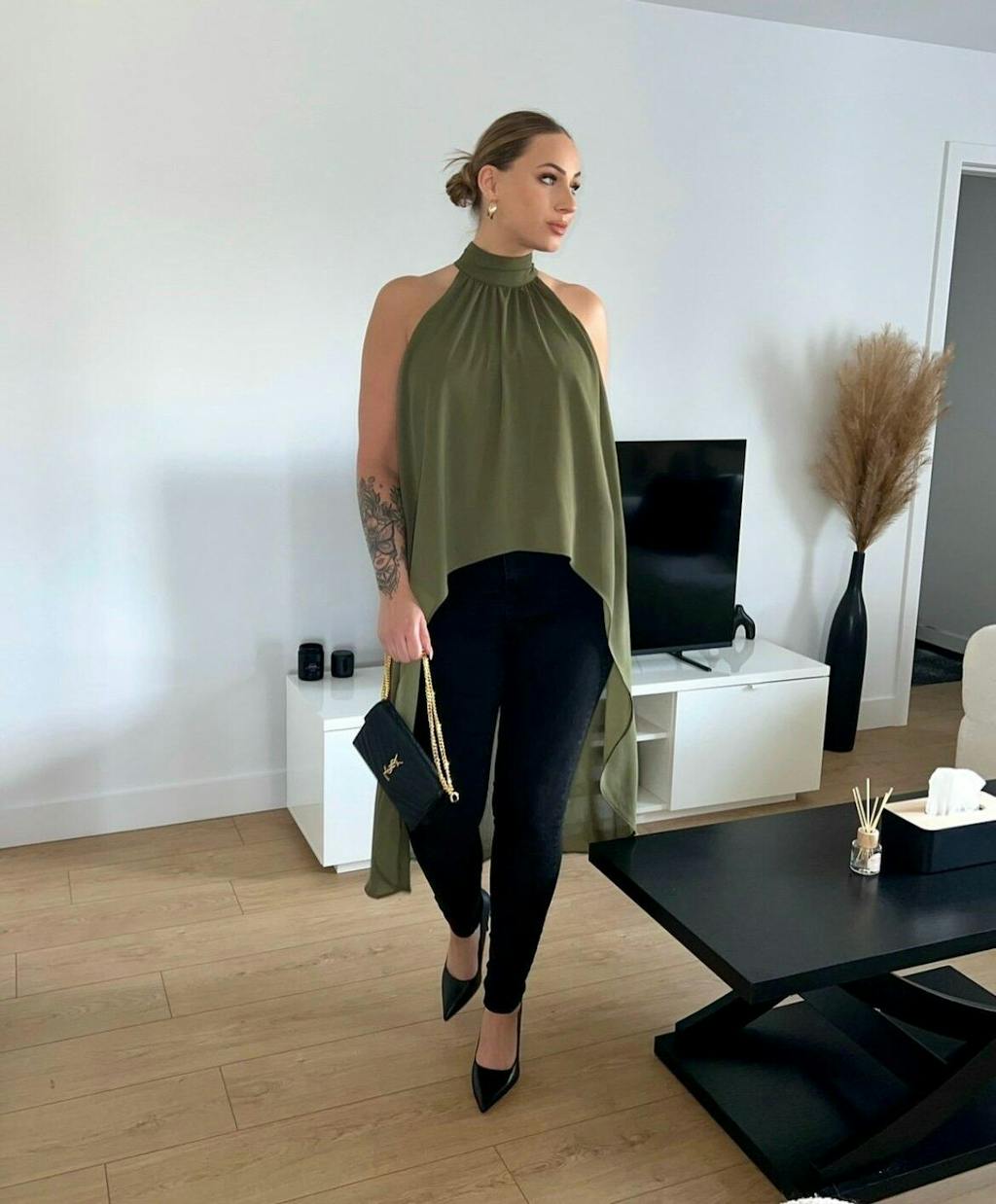 This chiffon halter neck top is absolutely gorgeous! The fabric drapes beautifully and gives such a classy, elevated look. The color is stunning in person and pairs effortlessly with so many different outfits - from tailored trousers to jeans to skirts. It’s the perfect versatile piece to dress up or down.