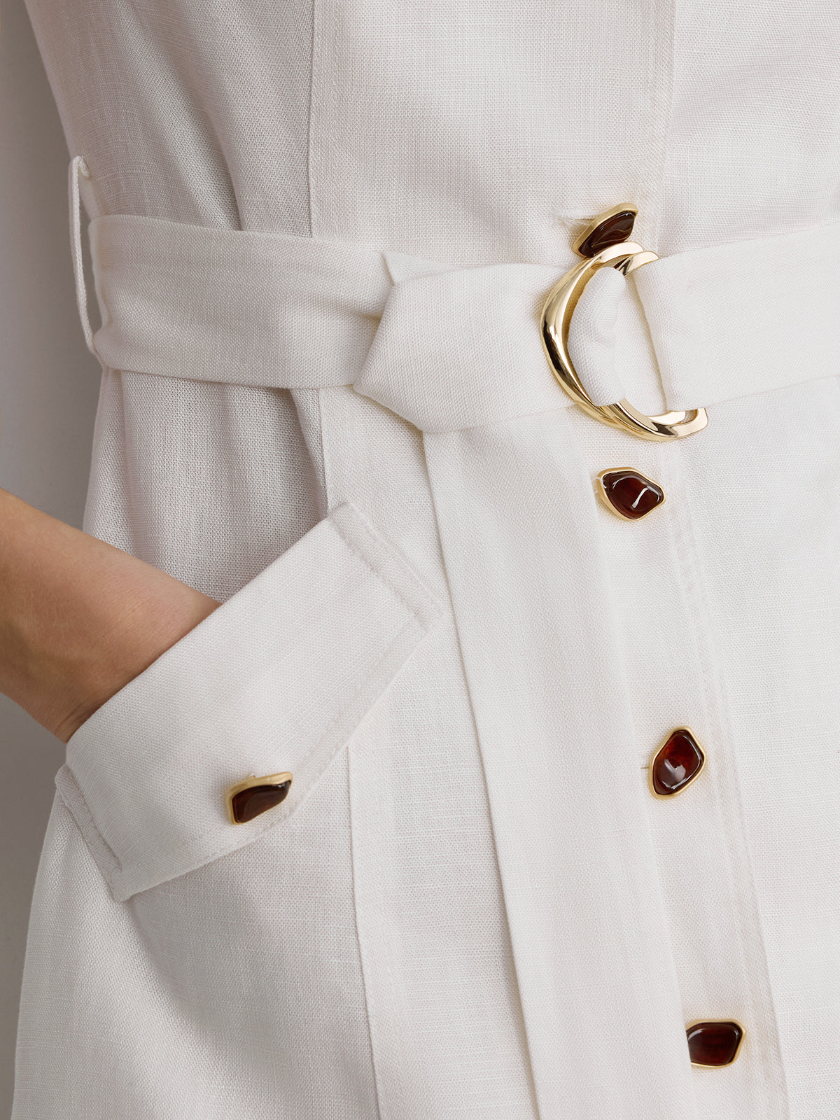 belted,casual,clothing,coll:dresses,coll:linen_cotton,corpcore,cotton&linen,dresses,in_six_month,metal detail,minegence,no,non-stretch,not_low_sales,oa251211012,off-white,photo_model,regular,regular fit,shawl collar,short,sleeveless,the linen ease,women