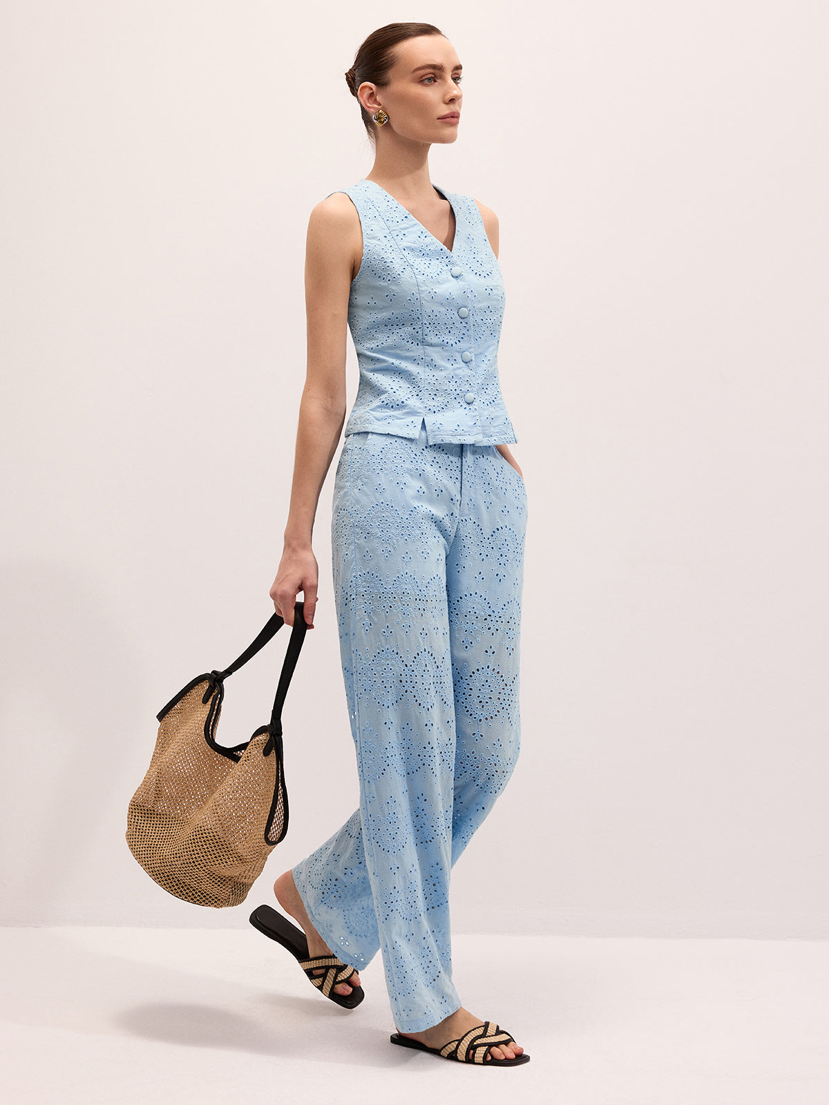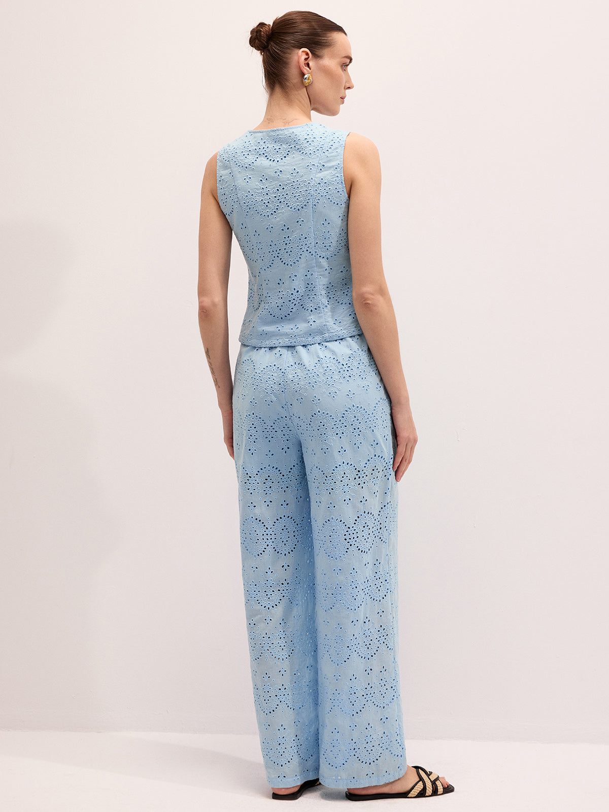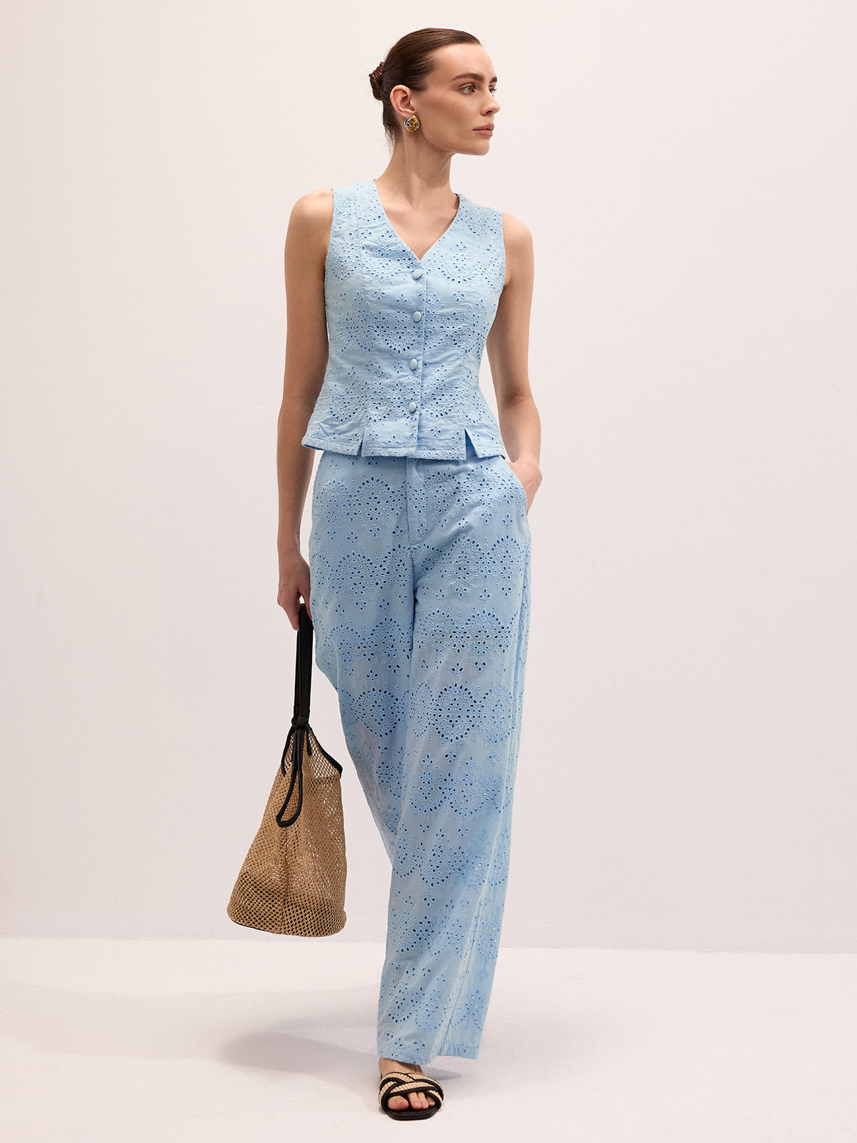 Cotton Eyelet Embroidered Vest & Pants Set