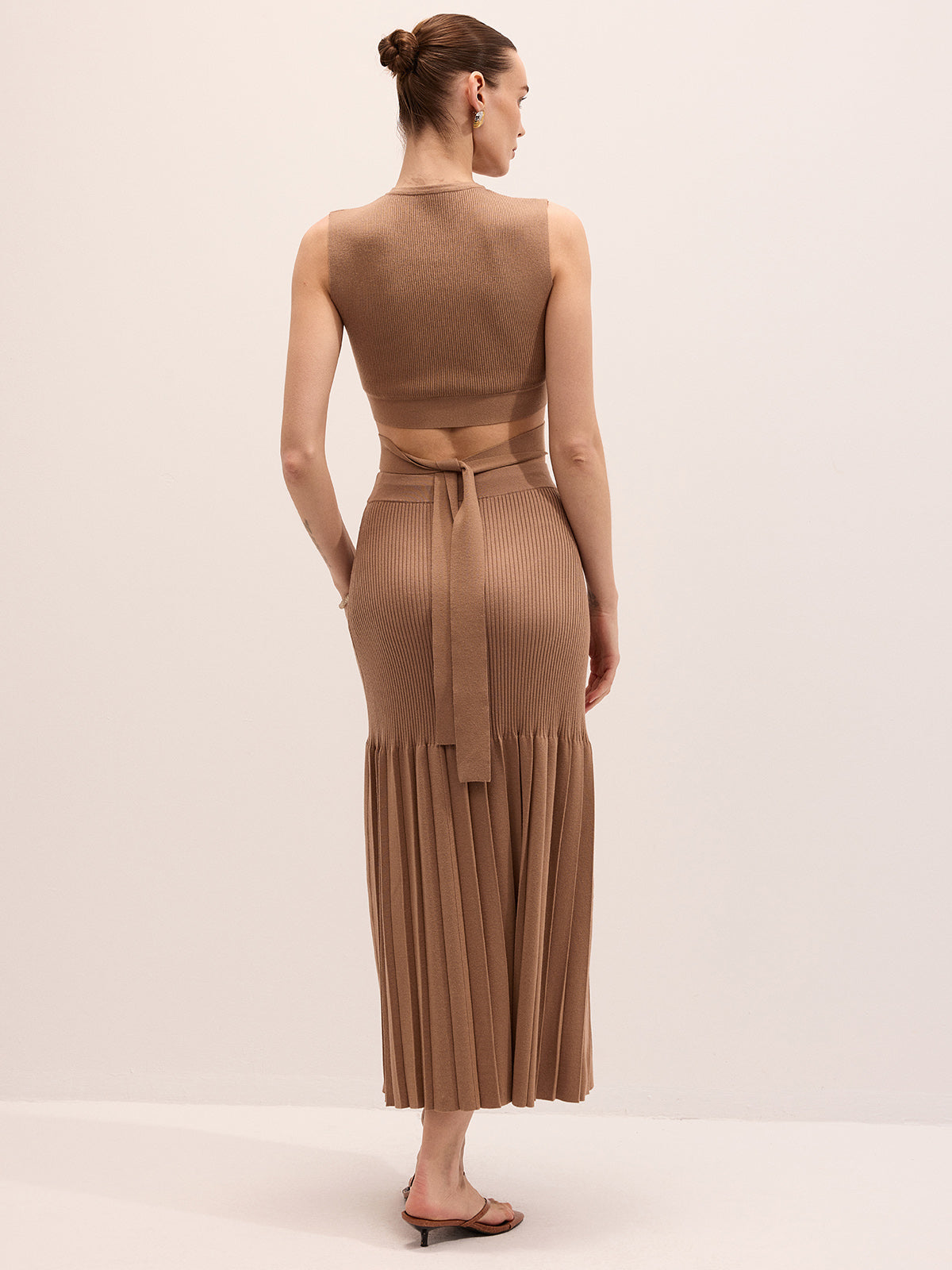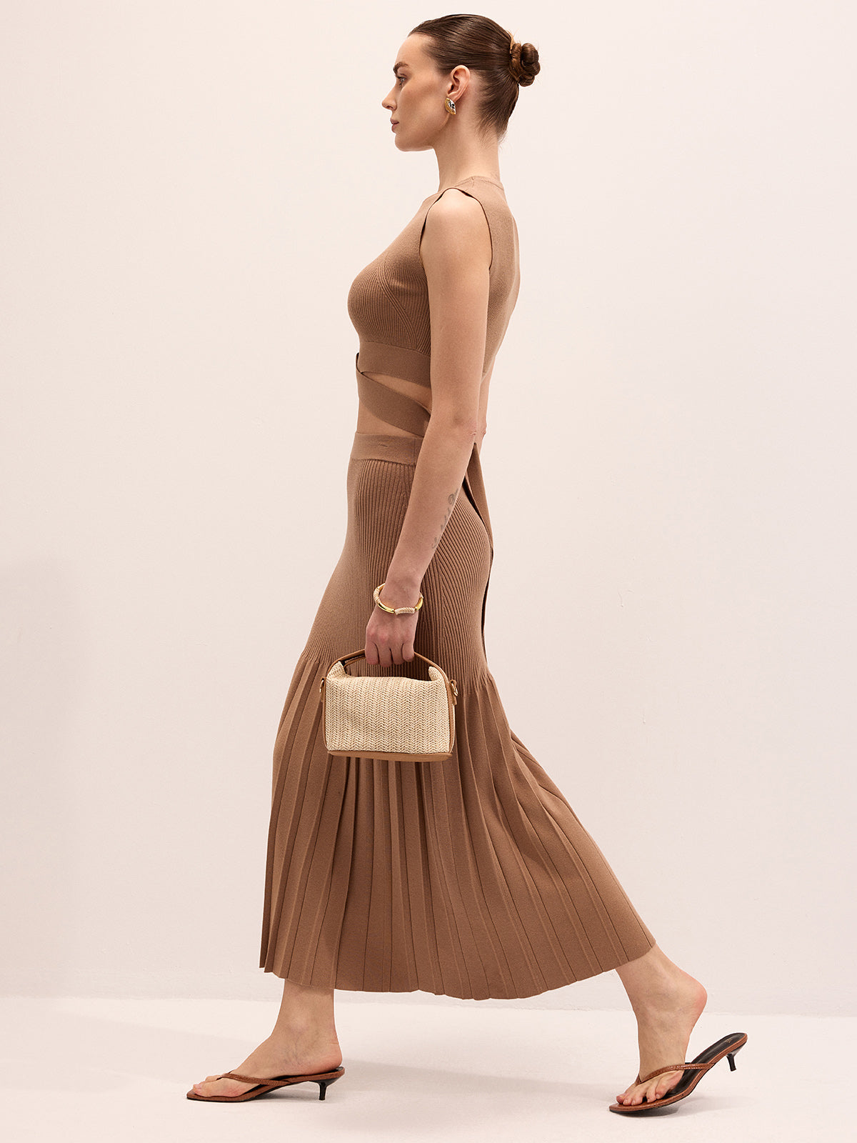 brown,clothing,coll:knitwear,coll:matching_sets,coll:skirts,coll:sweater_tops,coll:sweaters_cardigans,coll:tops,coll:trending,coll:vacation,coll:weekend_getaway,cross wrap,date,in_six_month,knit,knitwear,medium stretch,minegence,not_low_sales,oa251217004,photo_model,pleated,regular,slim fit,sweater co-ords,the linen ease,vacation,women