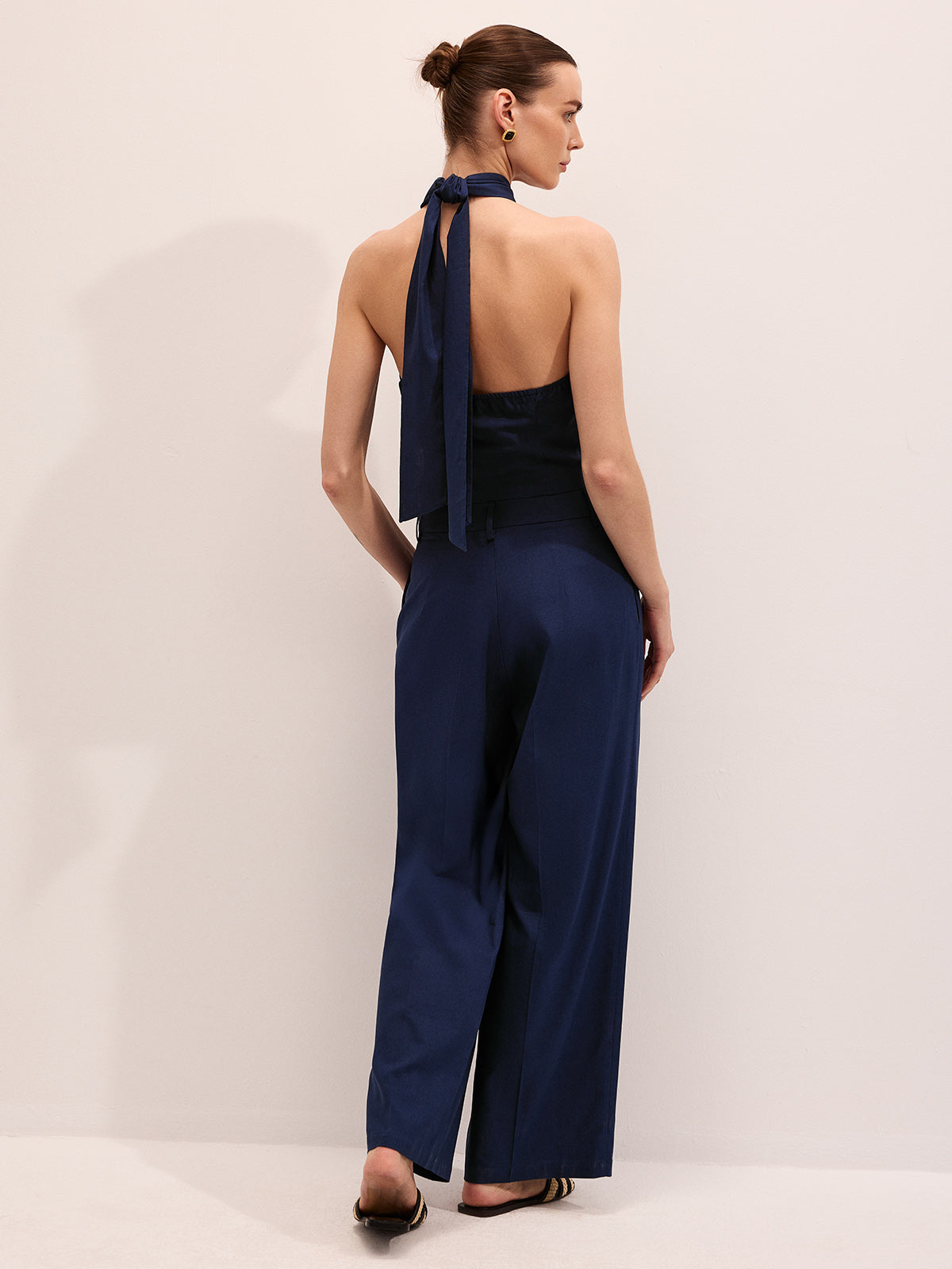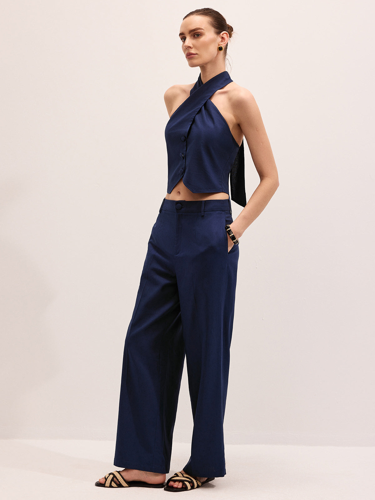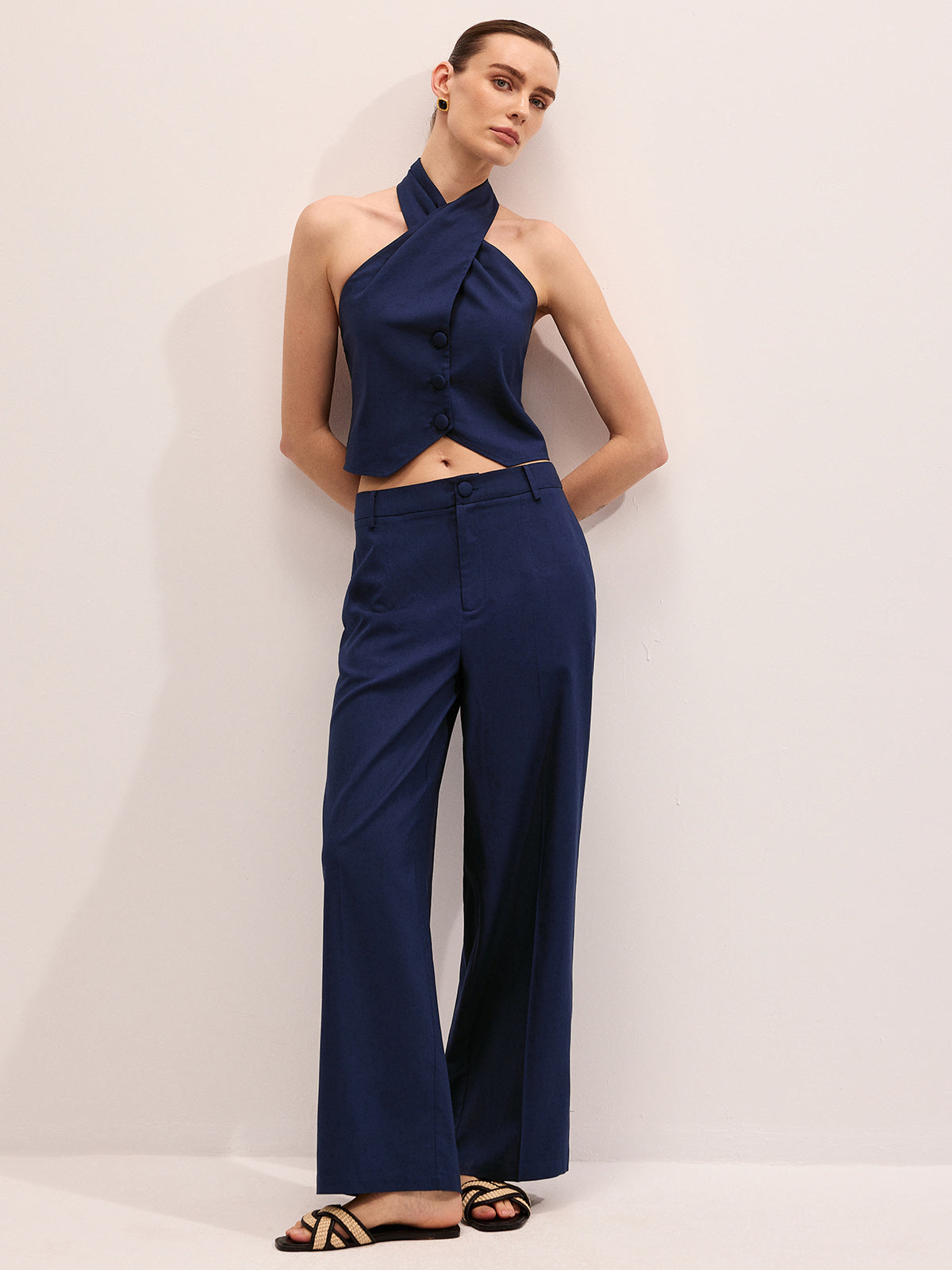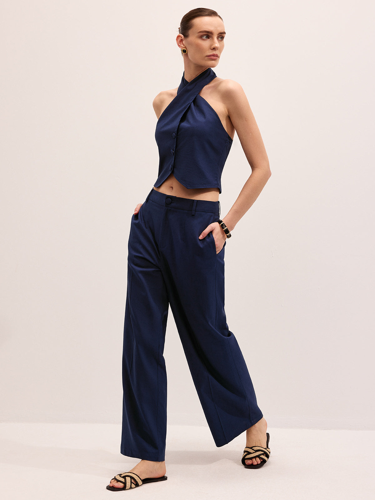 casual,clothing,coll:bottoms,coll:linen_cotton,coll:matching_sets,coll:vacation,coll:vests,coll:weekend_getaway,cotton&linen,cross wrap,halter,in_six_month,minegence,navy,no,non-stretch,not_low_sales,oa260122052,pant sets,photo_model,regular,regular fit,sets,the linen ease,tied&knot,vacation,women
