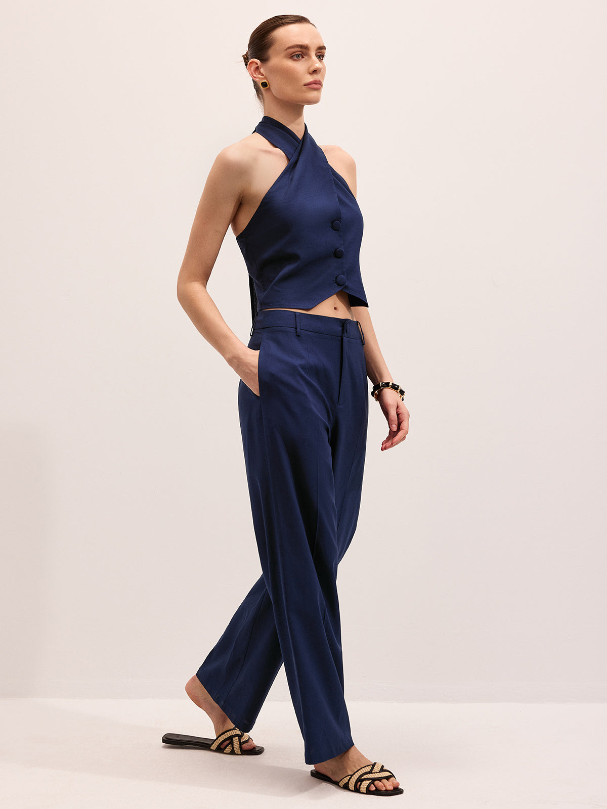 Linen Blend Halter Vest & Pants Set