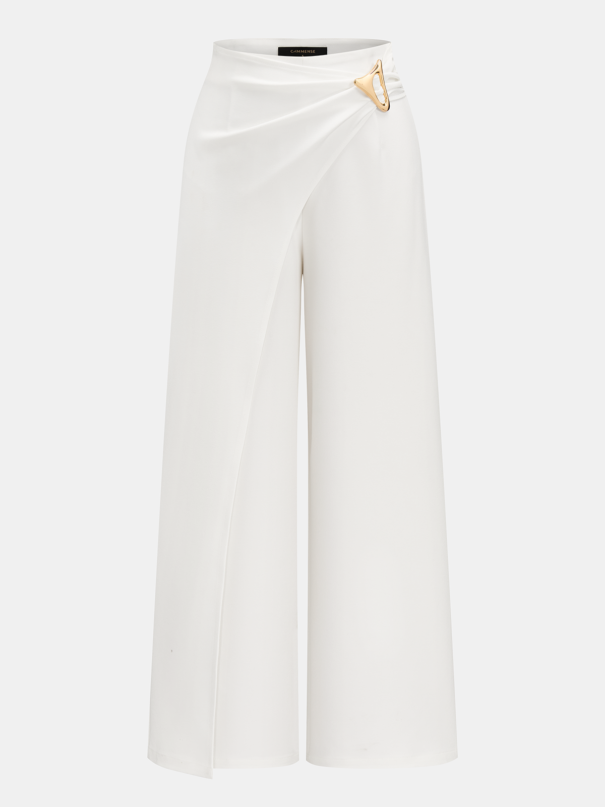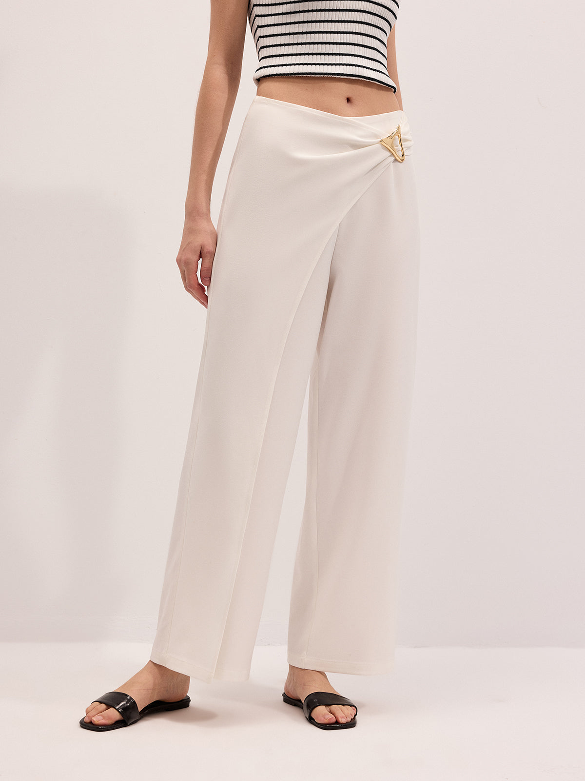 asymmetric,bottoms,clothing,coll:bottoms,coll:pants,coll:trending,coll:vacation,coll:weekend_getaway,coll:wide_leg,corpcore,cross wrap,in_six_month,long pants,metal detail,mid waist,minegence,no,non-stretch,not_low_sales,oa260108032,pants,photo_model,regular,regular fit,the linen ease,vacation,white,women,woven fabric