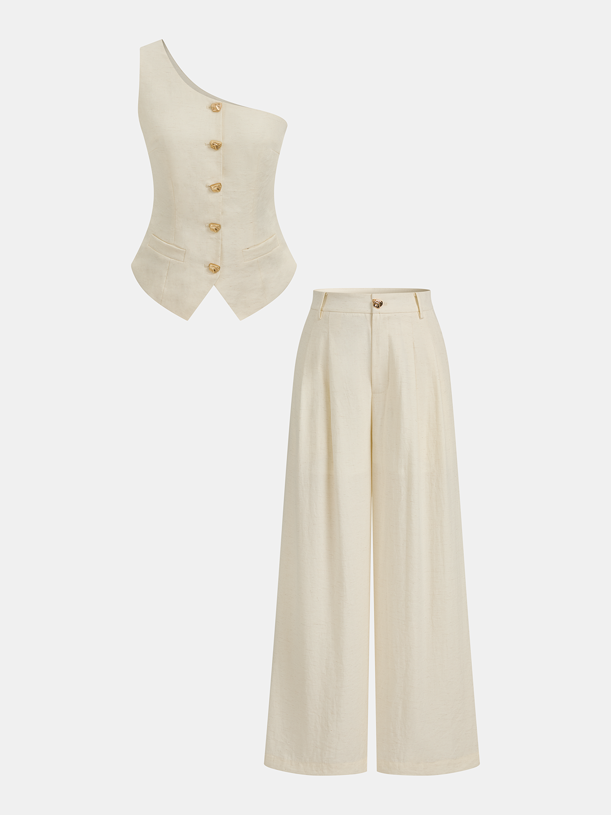 asymmetric,casual,clothing,coll:bottoms,coll:linen_cotton,coll:matching_sets,coll:vests,corpcore,cotton&linen,in_six_month,metal detail,minegence,non-stretch,not_low_sales,oa260120015,off-white,pant sets,pleated,regular,regular fit,sets,the linen ease,women