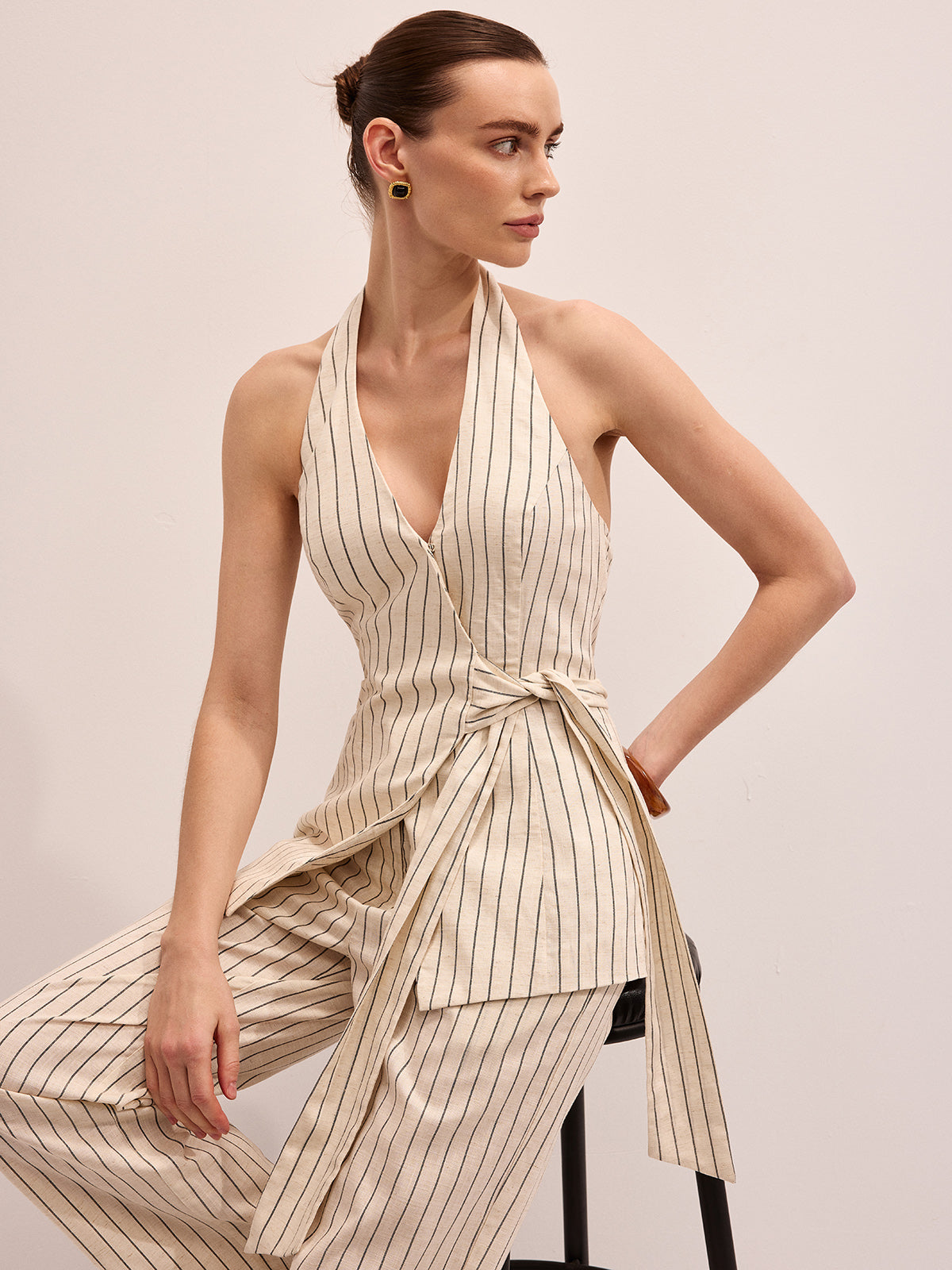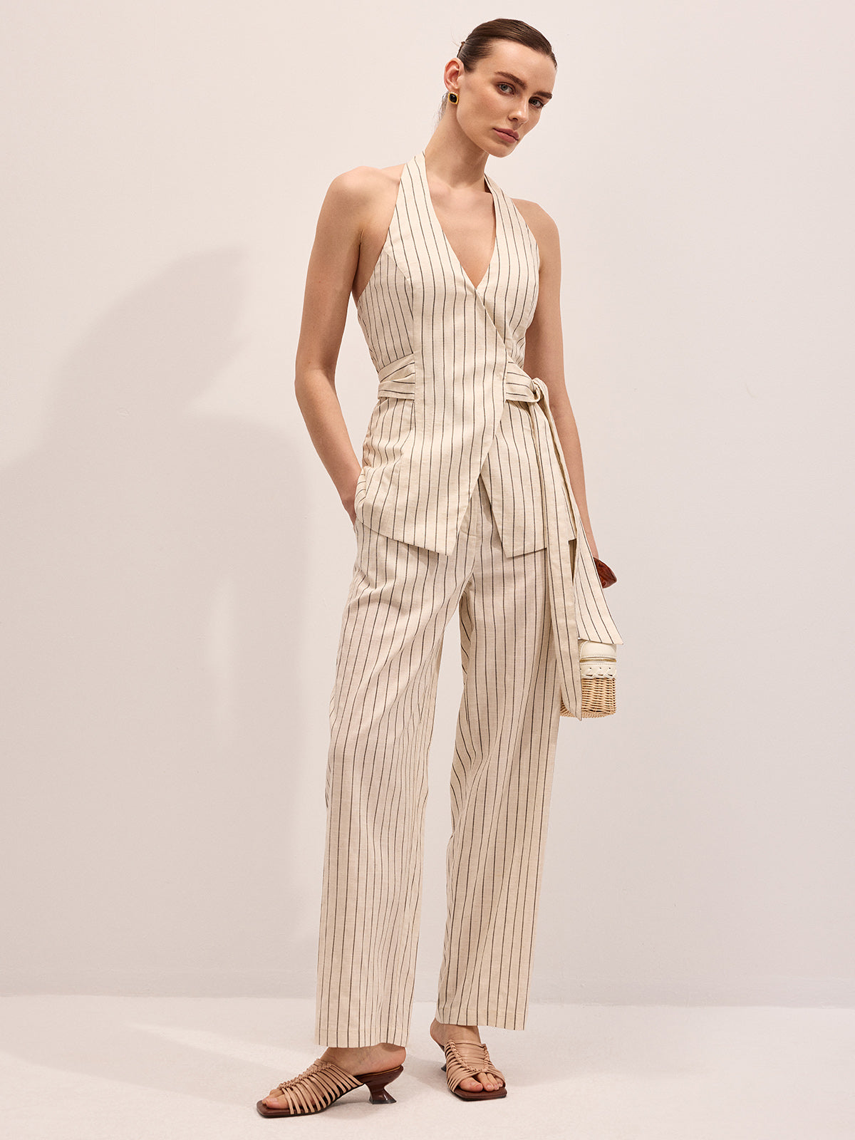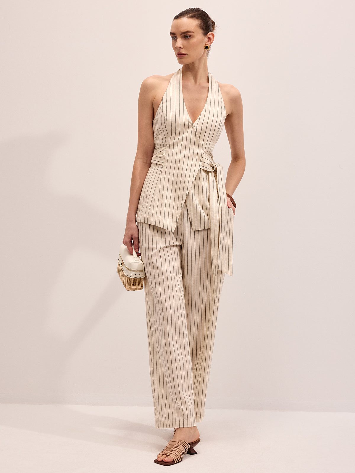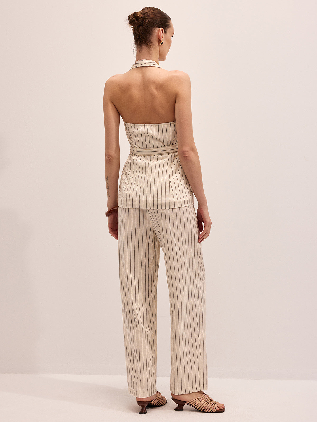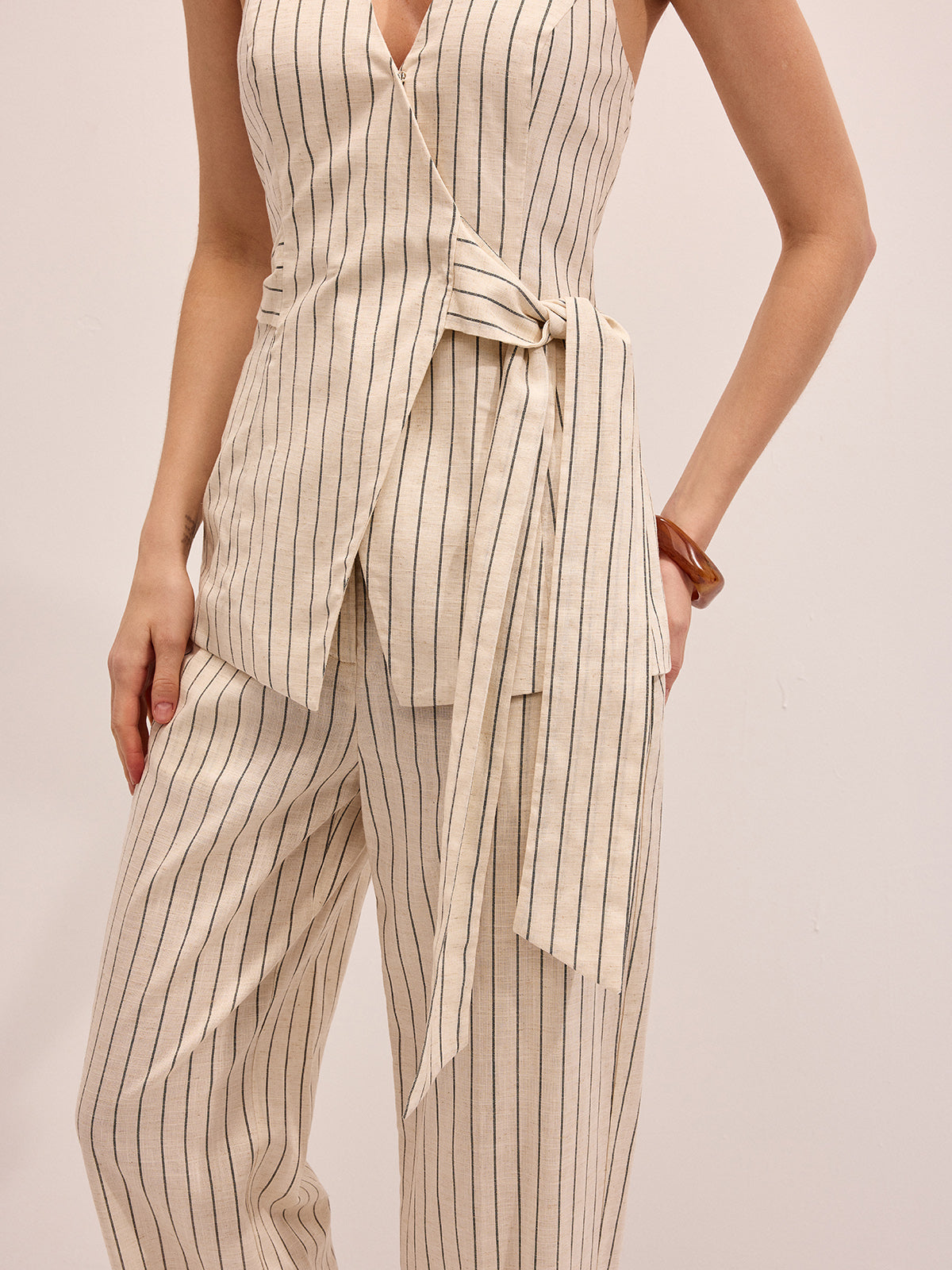 Striped Cotton Linen Halter Vest & Pants Set