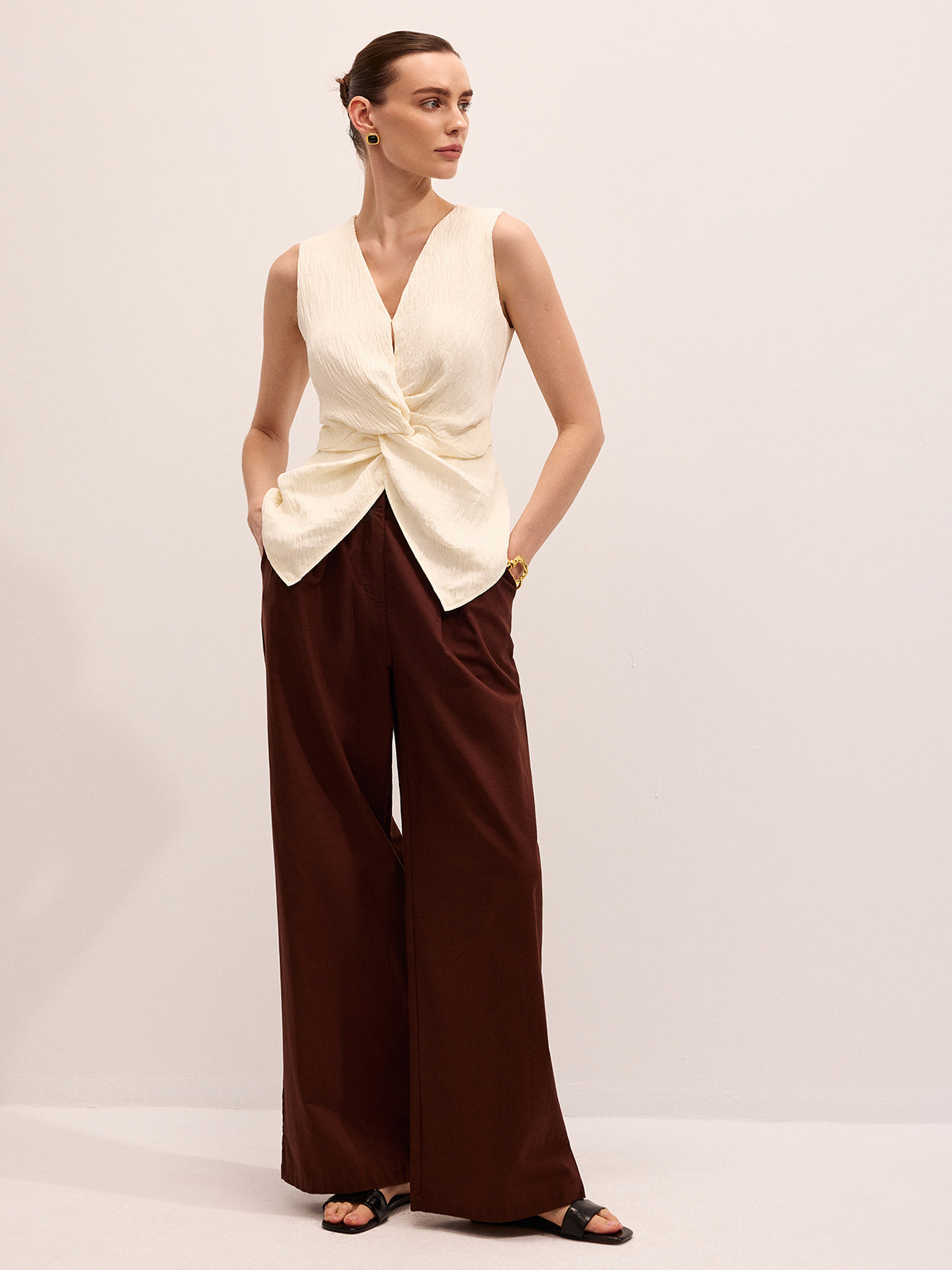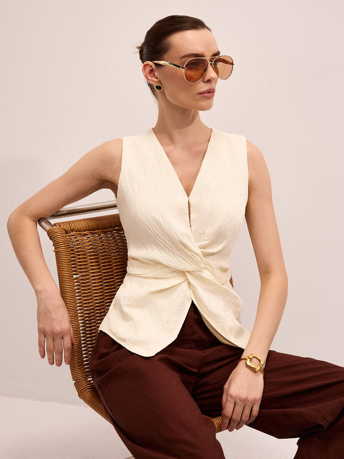 Twisted Sleeveless V-Neck Blouse