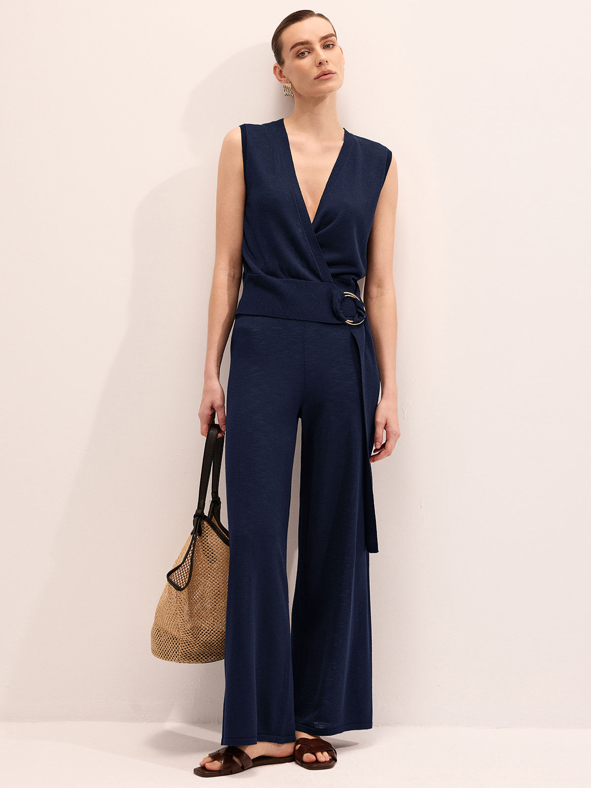 Wrap V-Neck Knit Top & Pants Set