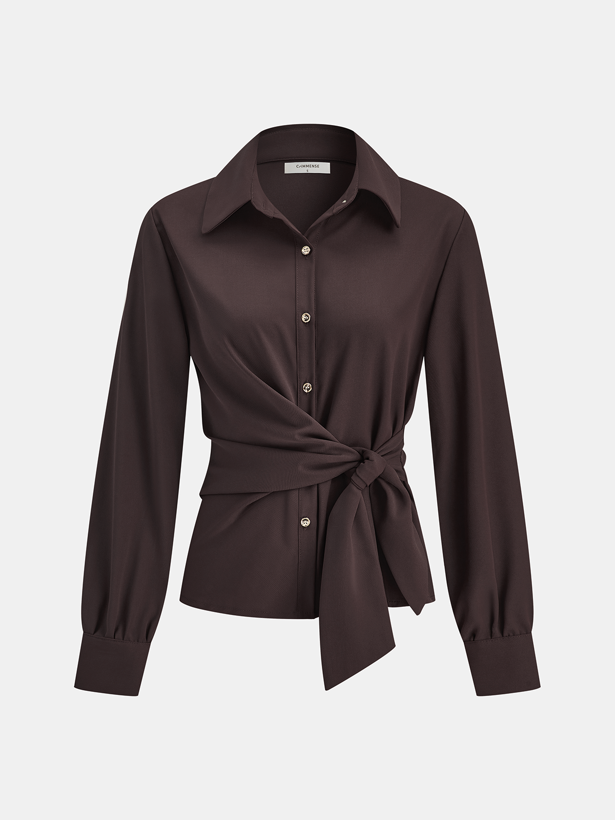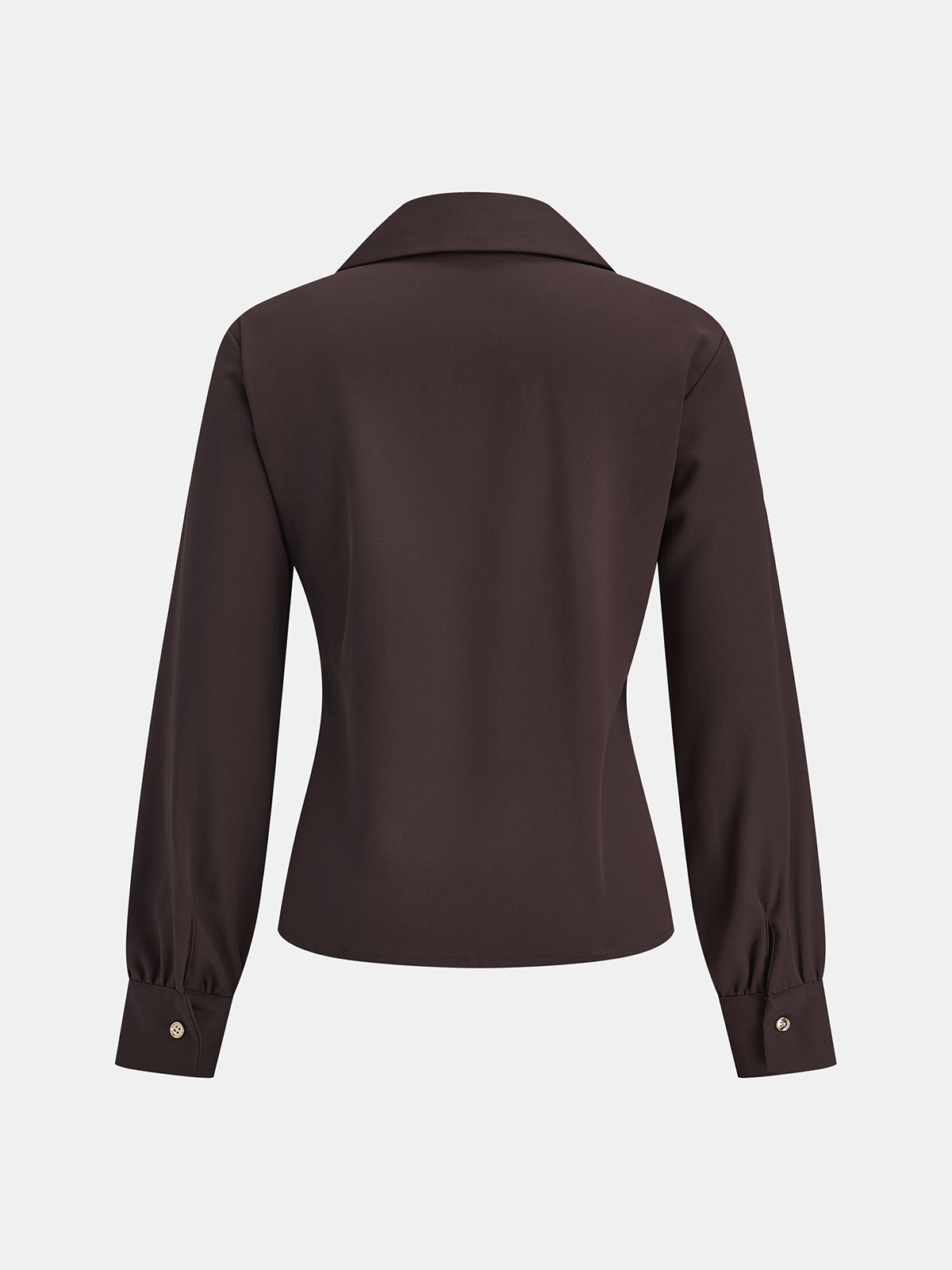 a-none,casual,clothing,coll:blouses_shirts,coll:tops,collar,corpcore,dark brown,fall,flashsale2023,in_six_month,inner sample,long sleeve,minegence,no,not_low_sales,oa250915044,regular,regular fit,shirts,slight stretch,spring,tops,winter,women,woven fabric
