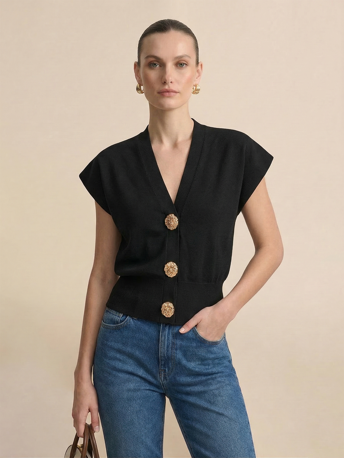 apricot,black,bloused waist,casual,cathryn-d,clothing,coll:knitwear,coll:sweaters_cardigans,coll:tops,coll:trending,coll:vests,corpcore,cyy,high stretch,in_six_month,knit,knitwear,lightyellow,metal detail,minegence,mwt,mwt-ss,not_low_sales,oa251211024,regular,regular fit,sweater vests,women