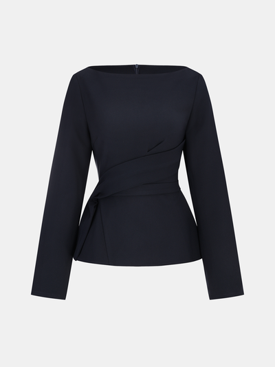 Ruffle V-Neck Puff Sleeve Tencel Blouse