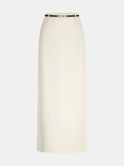 Buckle Detail Side Slit Suede Effect Maxi Skirt