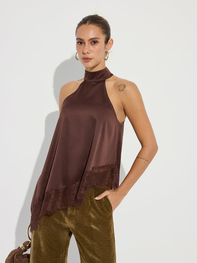 Asymmetric Wrap-Tie Sleeveless Top with Beaded String