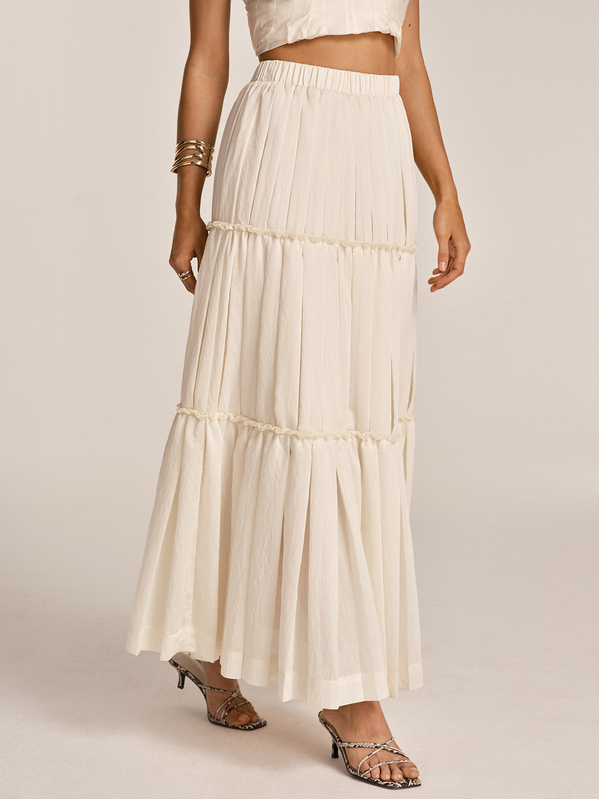 casual,clothing,coll:linen_cotton,coll:matching_sets,coll:skirts,coll:vacation,coll:weekend_getaway,cotton,elastic waistband,feminine,in_six_month,maxi,no,non-stretch,not_low_sales,oa260119065,off-white,photo_model,pleated,regular,sets,shift,skirt sets,twisted romance,umbrella hem,vacation,women
