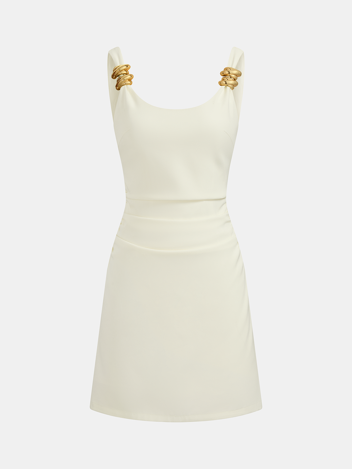 black,casual,clothing,coll:dresses,coll:linen_cotton,date,dresses,feminine,in_six_month,invisible zipper,linen blend,low cut,metal detail,no,not_low_sales,oa260107013,off-white,photo_ai,regular,ruched,short,sleeveless,slight stretch,slim fit,twisted romance,women