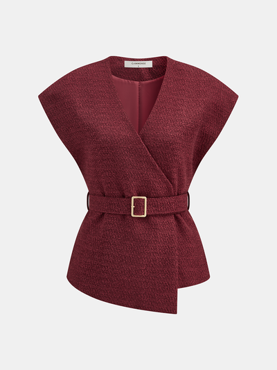 Belted Asymmetric Cap Sleeve V-Neck Vest