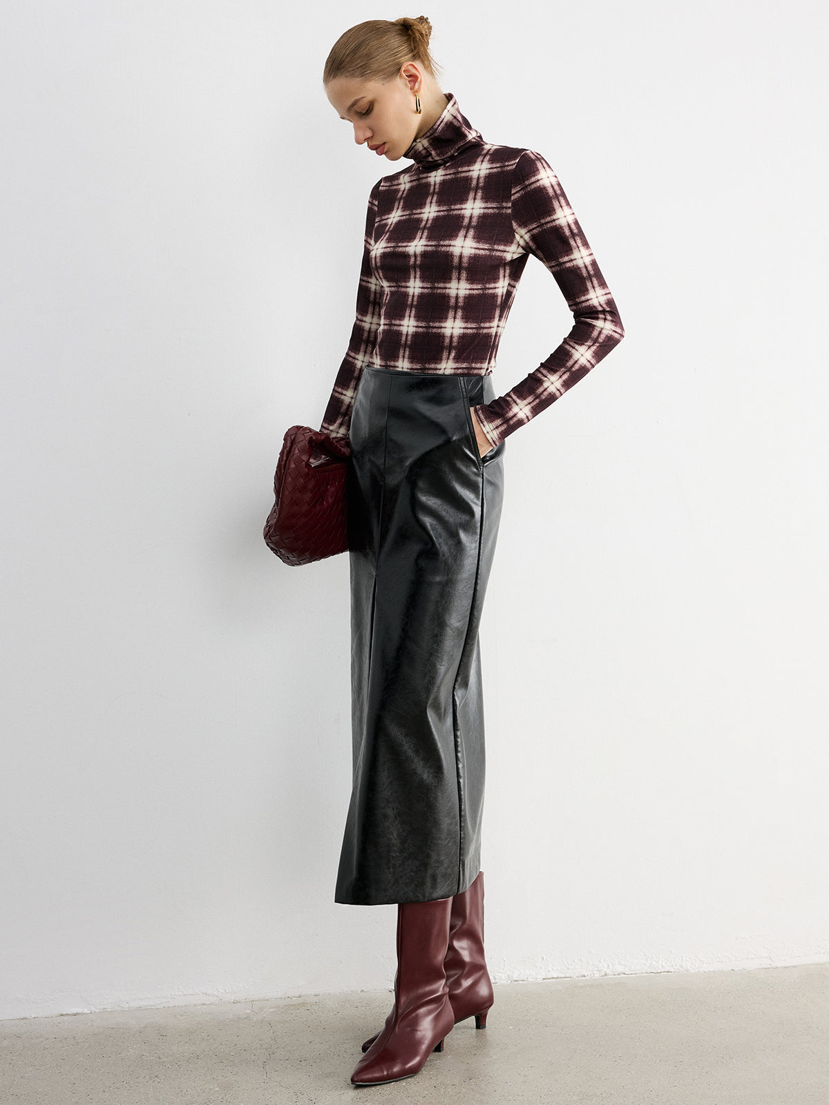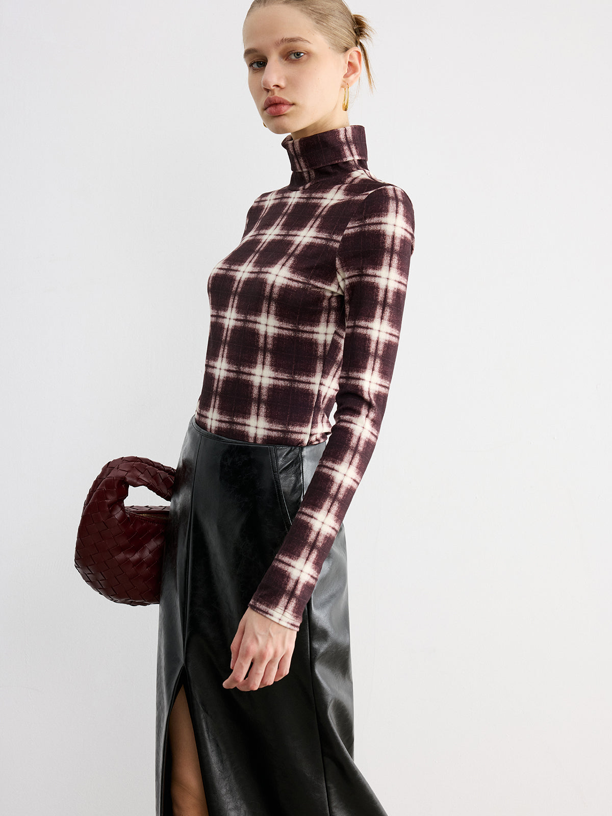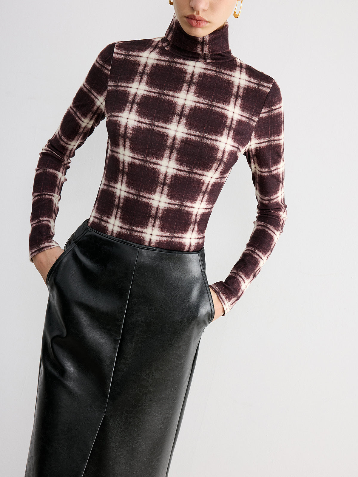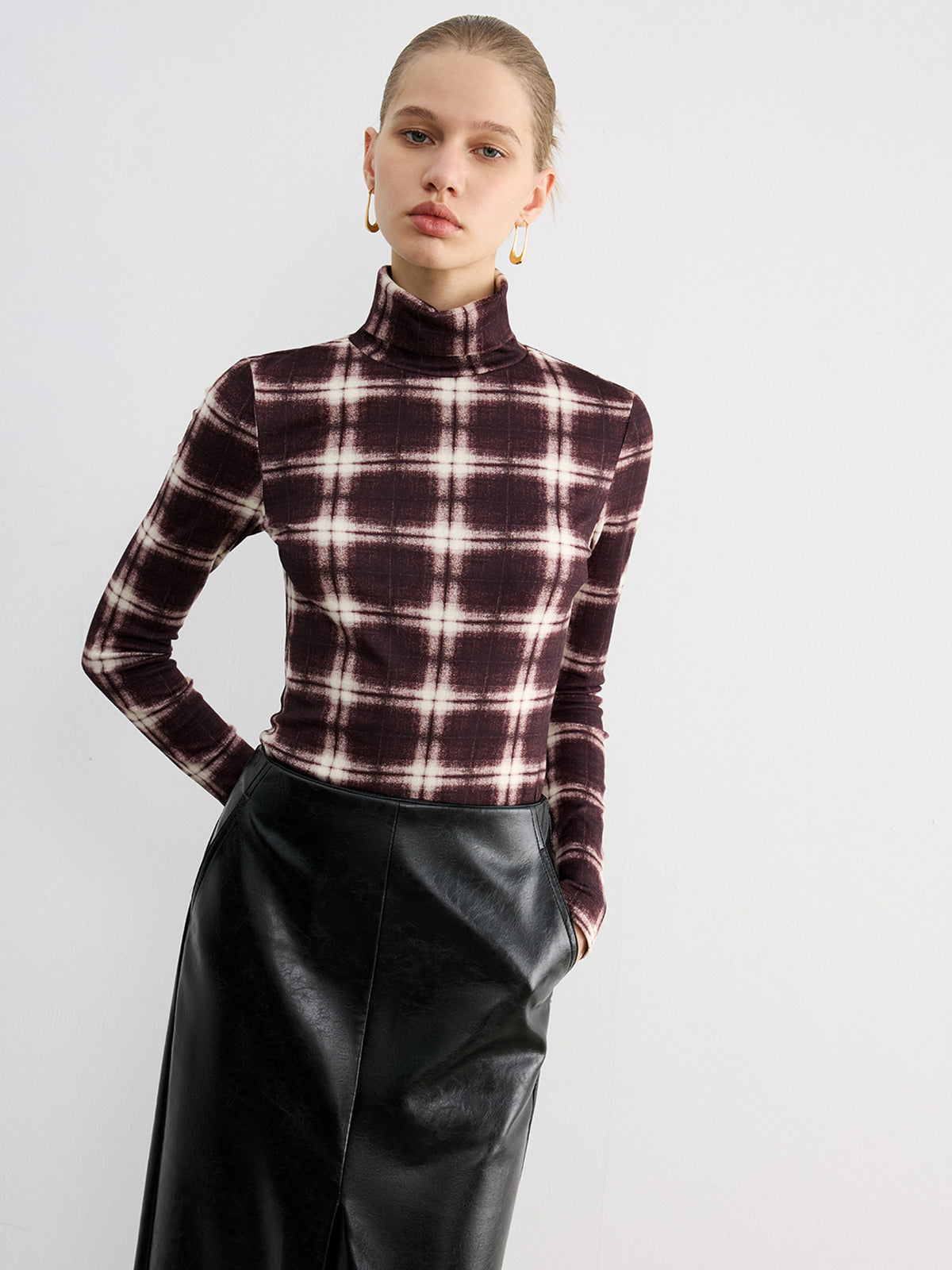 Plaid Slim Turtleneck Blouse
