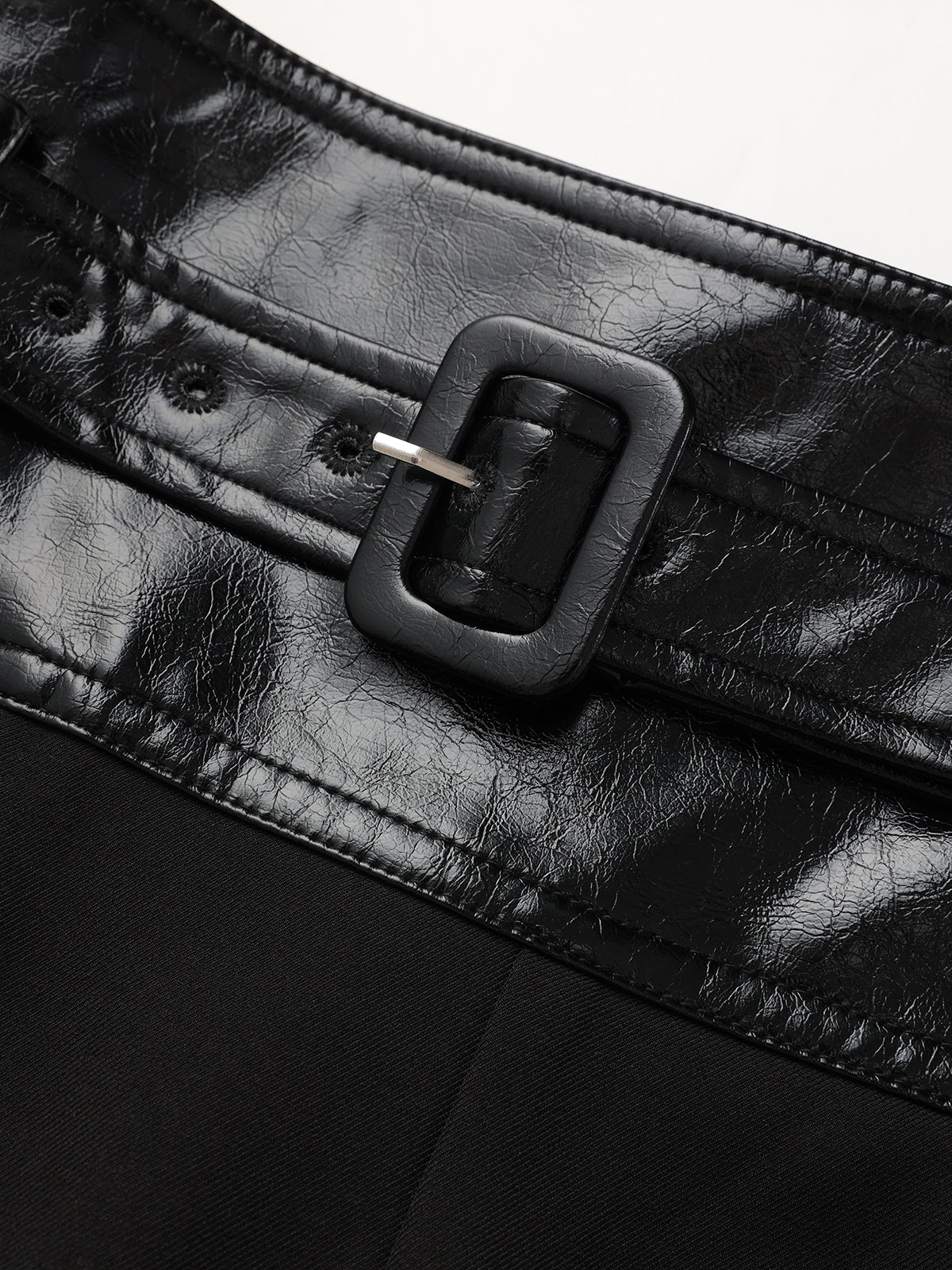 belted,black,bottoms,casual,clothing,coll:bottoms,coll:old_money,coll:pants,coll:trending,coll:vintage_fabrics,corpcore,fall,faux leather,high waist,in_six_month,long pants,minegence,no,non-stretch,not_low_sales,oa251015014,pants,patchwork,regular,regular fit,winter,women,woven fabric
