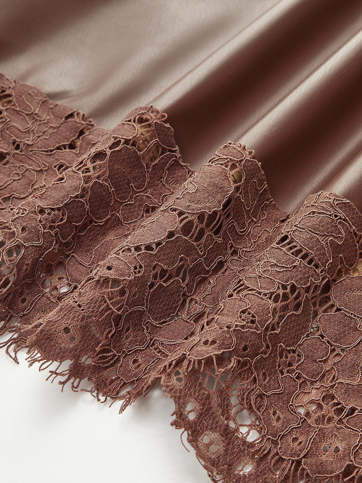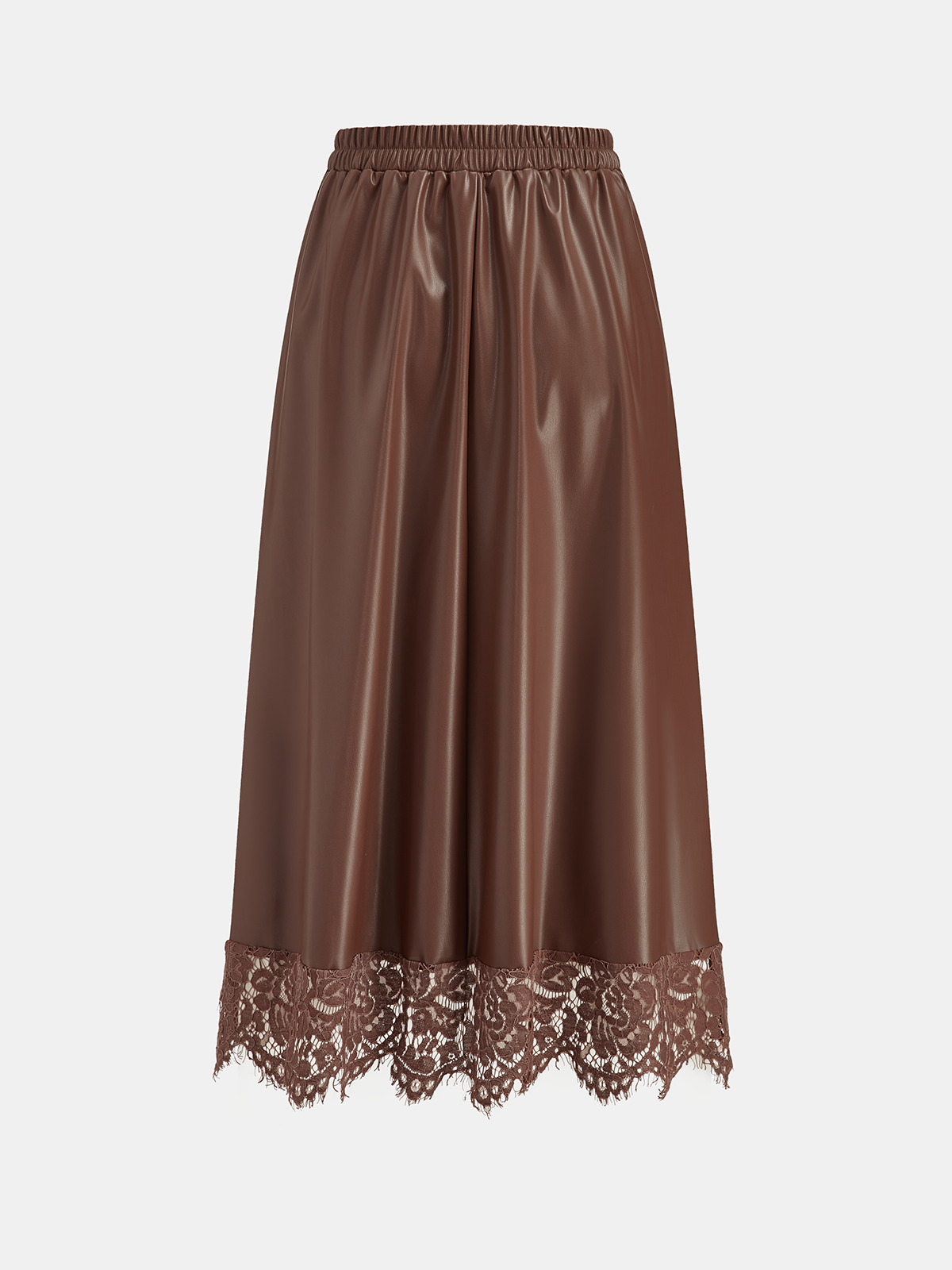 bottoms,clothing,coll:bottoms,coll:old_money,coll:skirts,coll:vintage_fabrics,corpcore,dark brown,date,fall,faux leather,high waist,in_six_month,lace,midi,minegence,no,non-stretch,not_low_sales,oa251110029,regular,regular fit,skirts,spring,winter,women