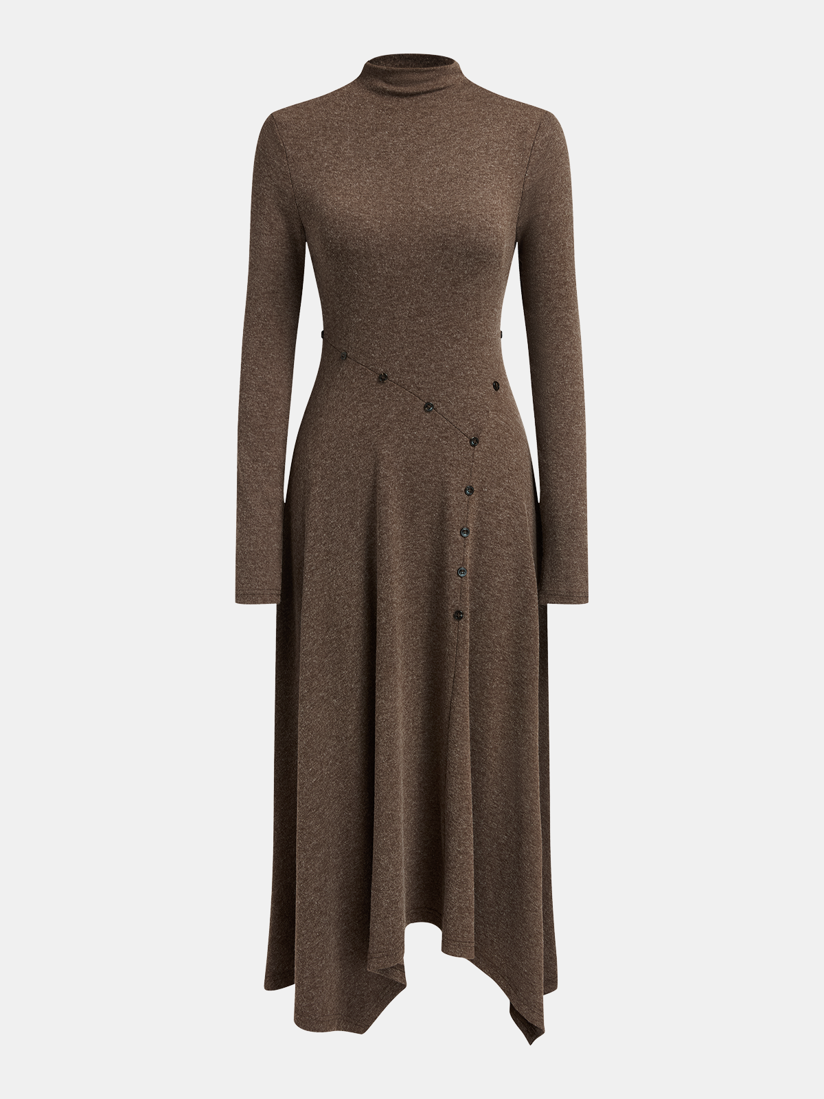 a-none,casual,clothing,coll:dresses,corpcore,dark brown,dresses,fall,in_six_month,jersey,long sleeve,medium stretch,midi,minegence,no,not_low_sales,oa251020113,regular,regular fit,spring,stand collar,winter,women