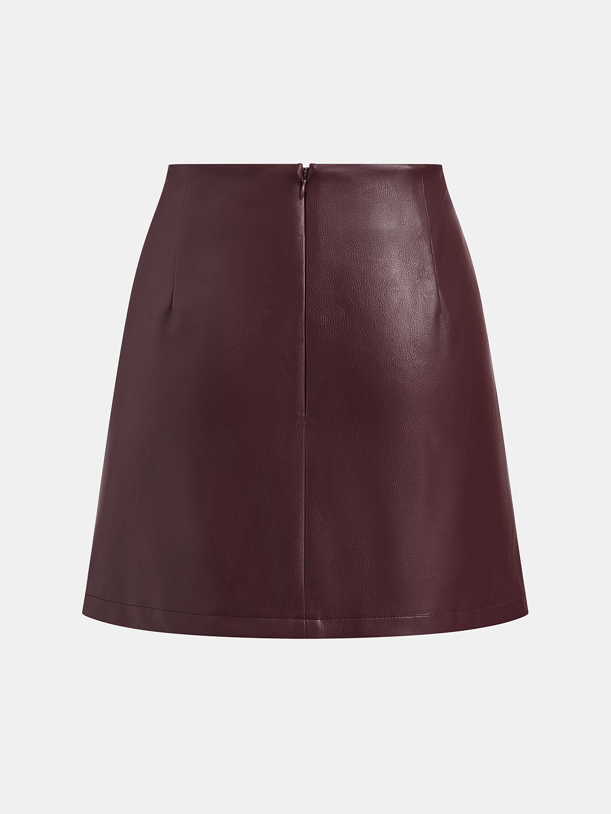 bottoms,burgundy,casual,cici select,clothing,coll:bottoms,coll:old_money,coll:skirts,coll:trending,coll:vintage_fabrics,corpcore,fall,faux leather,in_six_month,invisible zipper,mid waist,minegence,no,not_low_sales,oa251017139,regular,regular fit,short,skirts,slight stretch,winter,winter hues,women