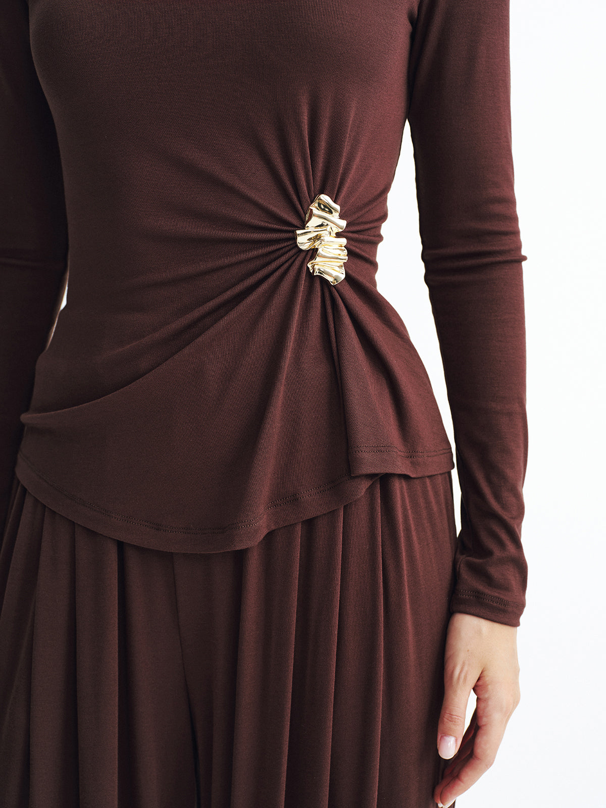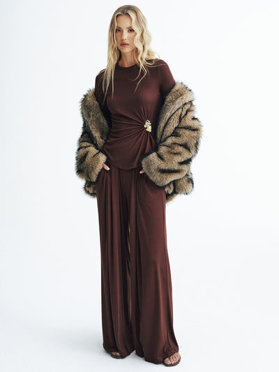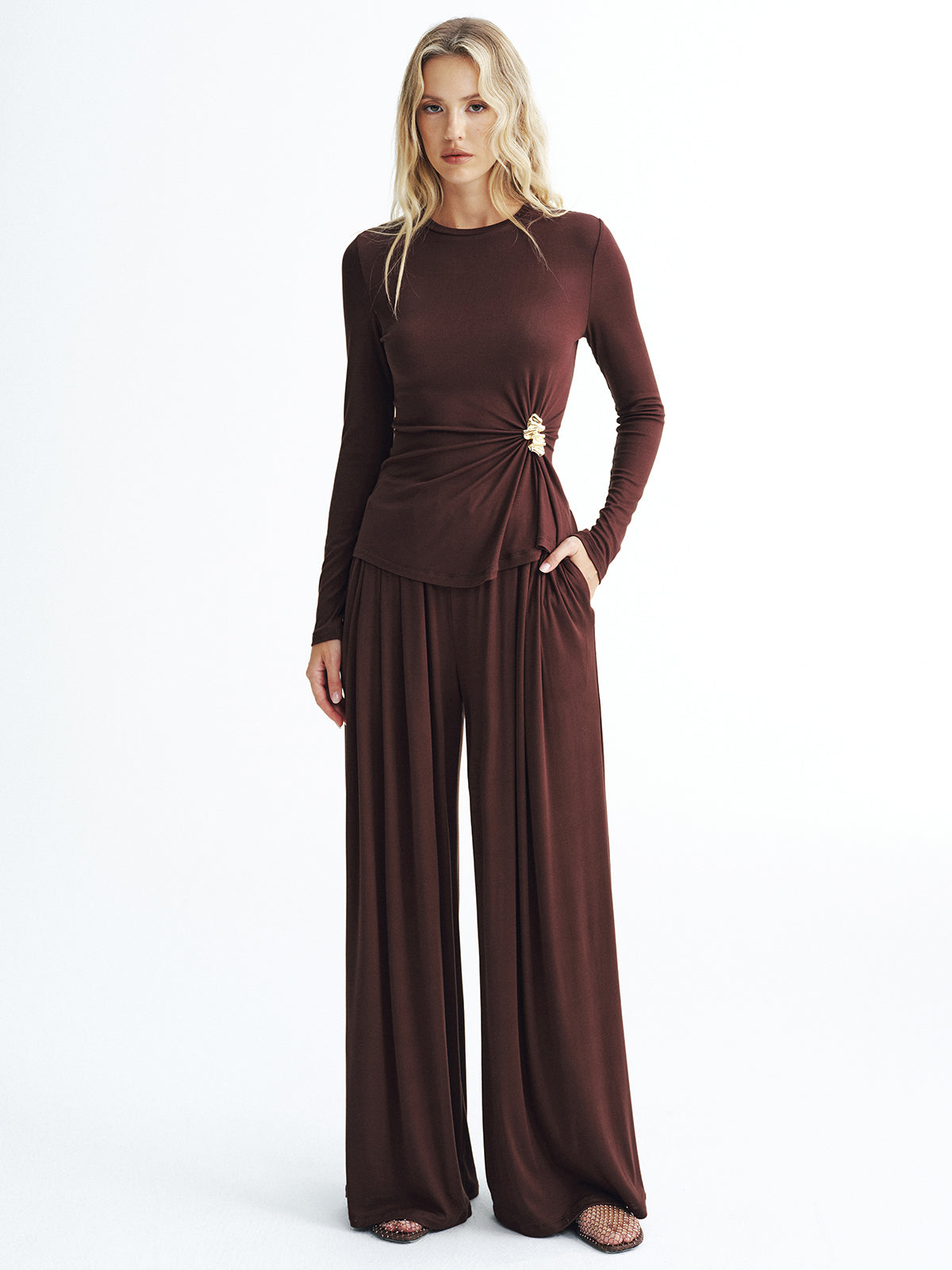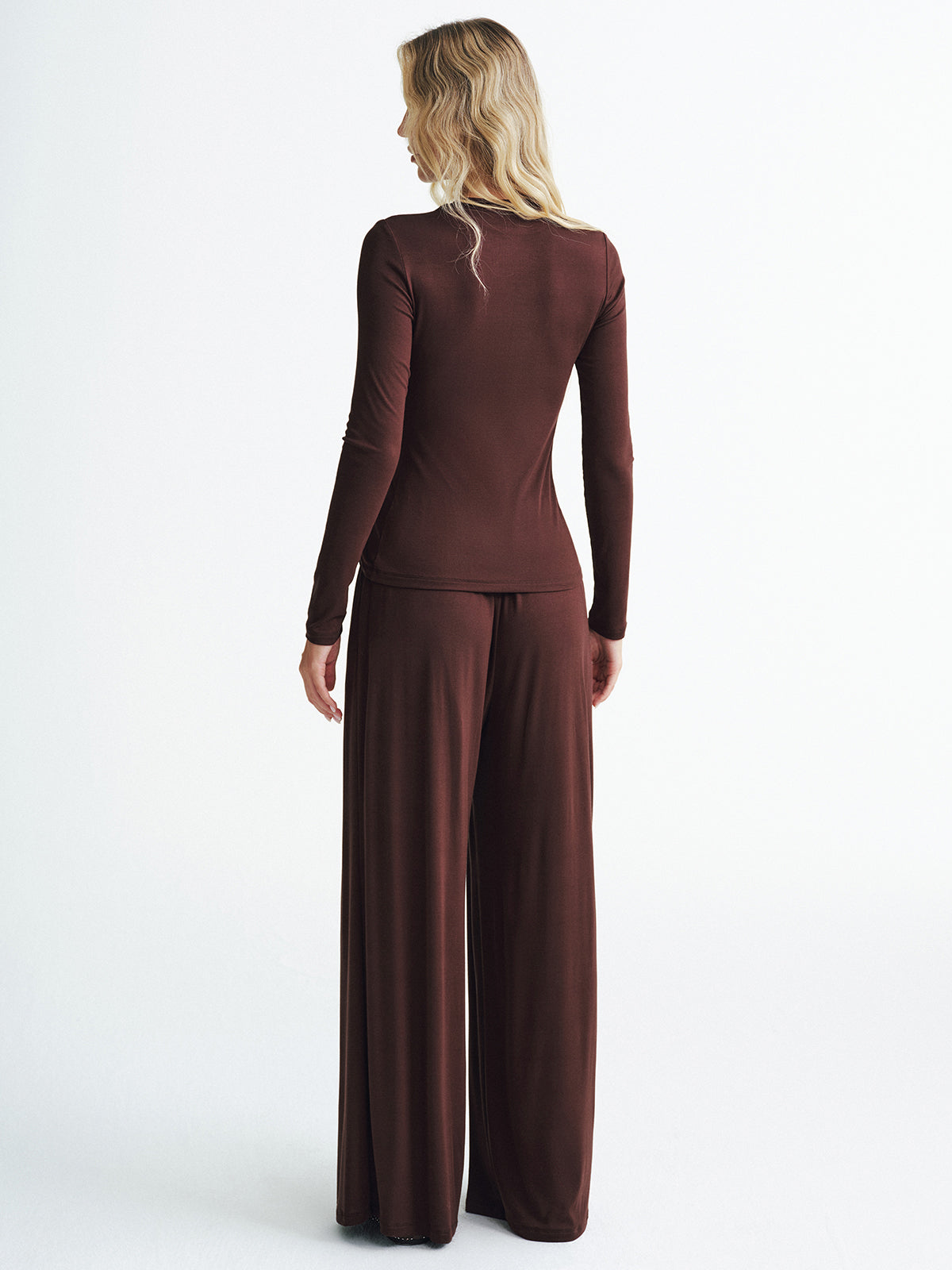 a-none,brown,casual,clothing,coll:bottoms,coll:matching_sets,corpcore,elastic waistband,fall,in_six_month,inner sample,jersey,minegence,not_low_sales,oa250829027,pant sets,photo_model,regular,regular fit,sets,slight stretch,spring,winter,women