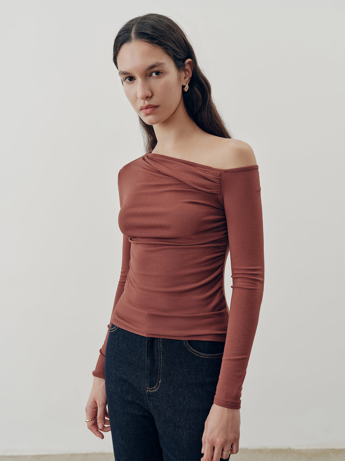 Off-Shoulder Fitted Ruched Long Sleeve Top