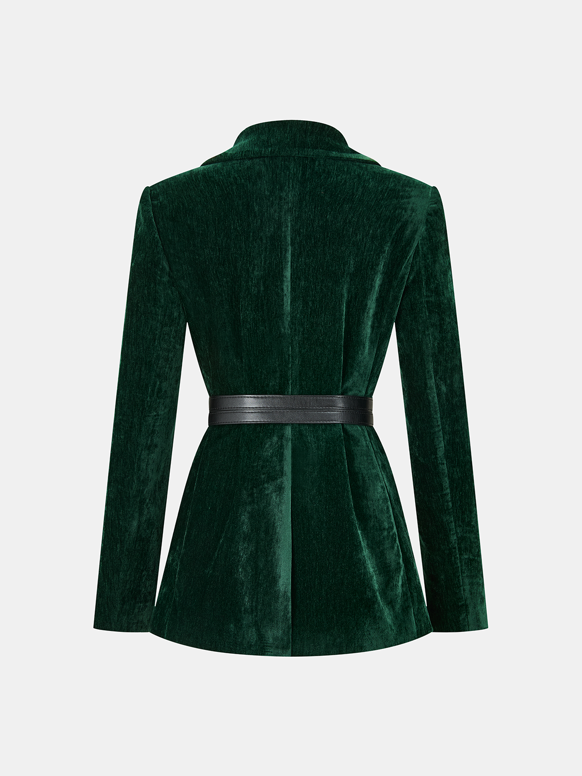 belted,blazers,clothing,coll:blazers,coll:outerwear,coll:tops,coll:trending,coll:vintage_fabrics,corpcore,fall,feminine,green,in_six_month,long sleeve,long top,metal detail,mwt,non-stretch,not_low_sales,oa251030096,outerwear,regular,regular fit,velvet,warm,winter,winter hues,women