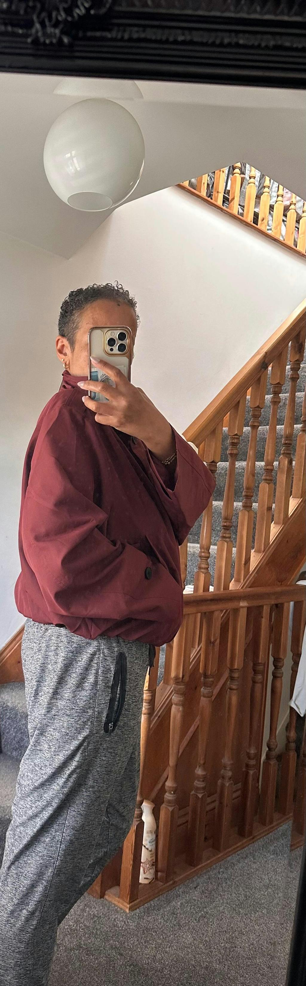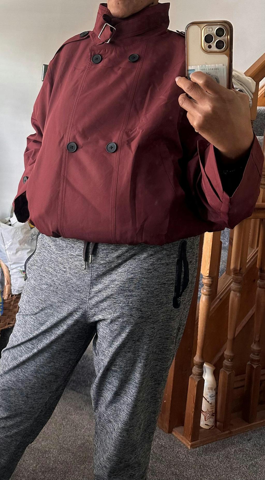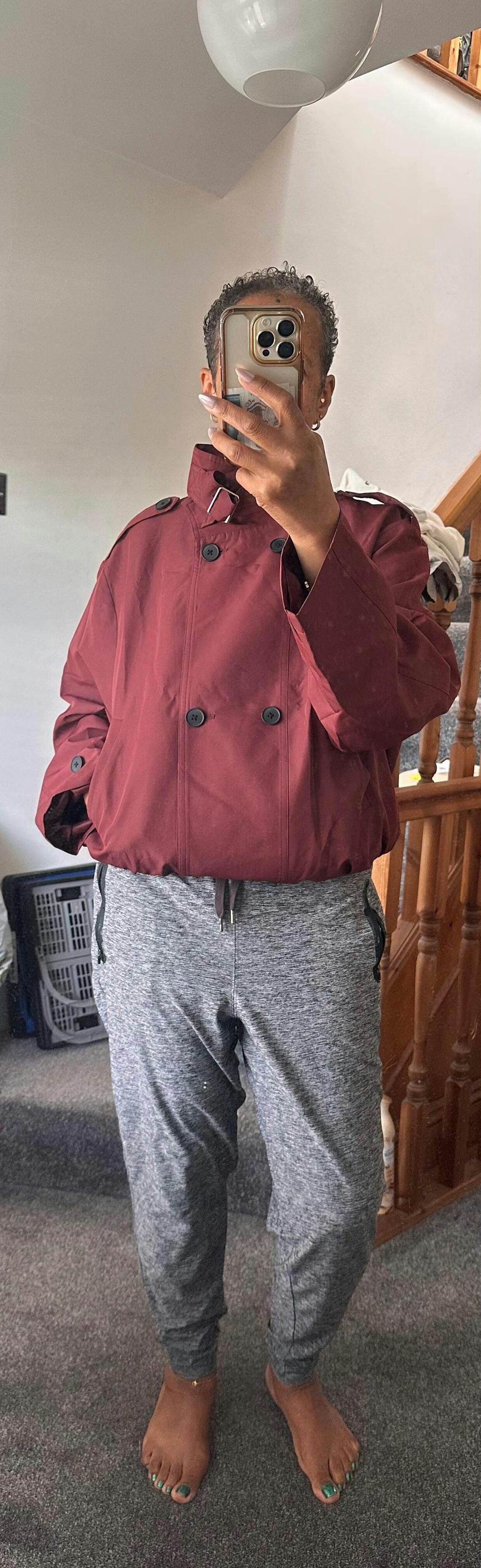 Absolutely love this trench bomber. Excellent quality, rich colour. Will be great for the transitional period between summer and autumn. Love the neck design detail with the buckle, it’s different.. good size useable pockets too. I ordered a slightly bigger size (large) so I can put a nice thick jumper underneath or just layered clothing. I’m a size 10/12 so it’s nice a roomy, little oversized look but that was my vision for it. I could nicely fit a medium too.
